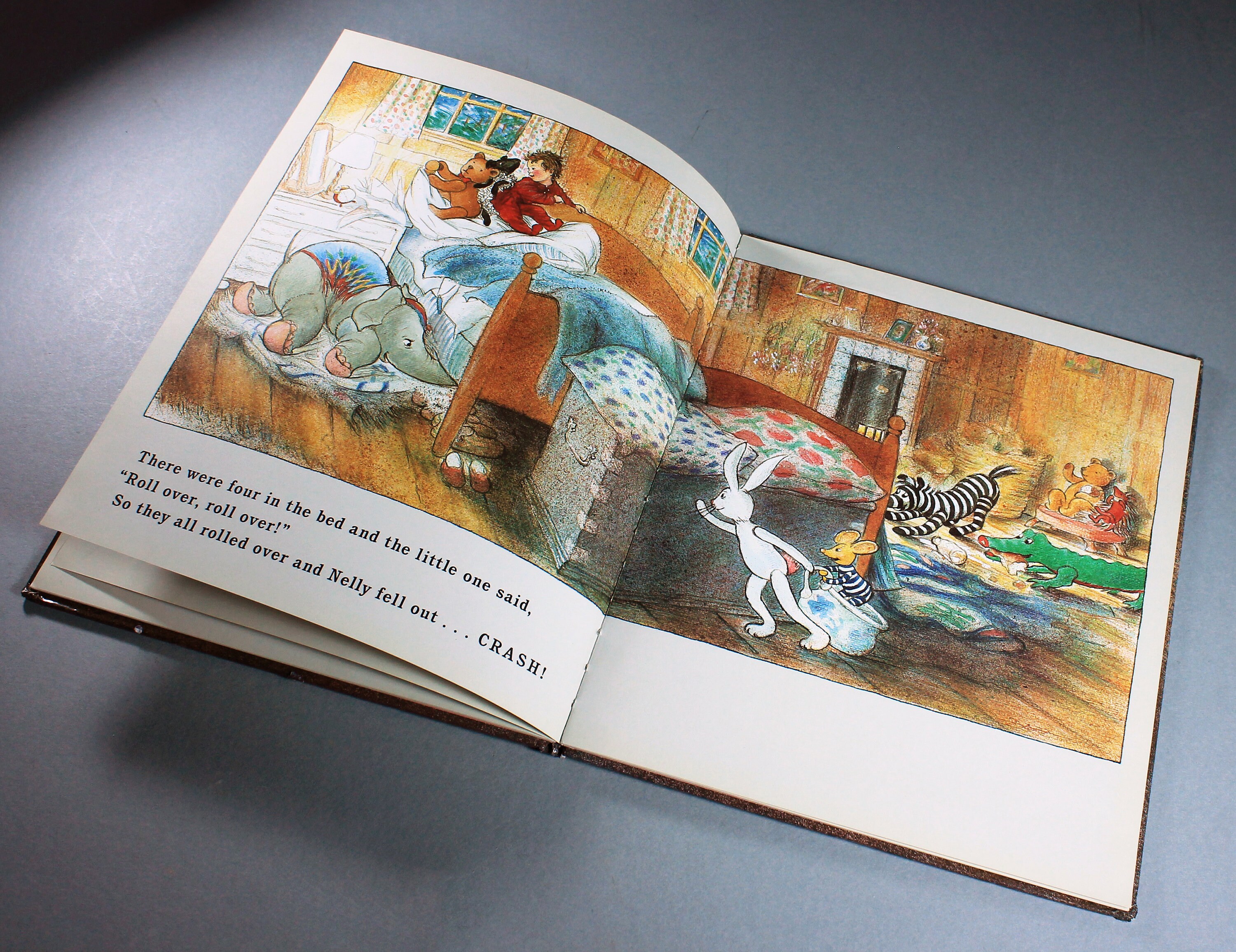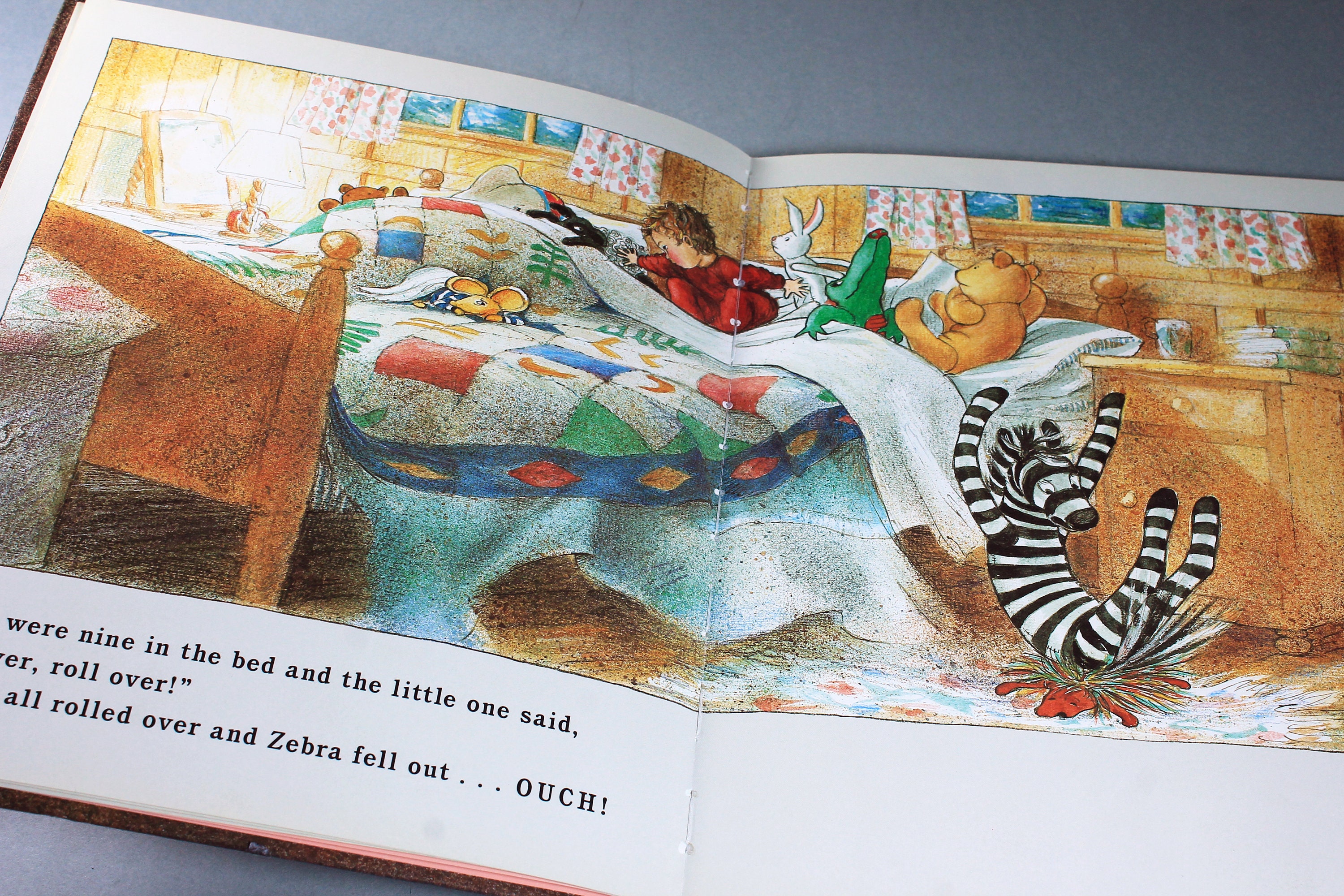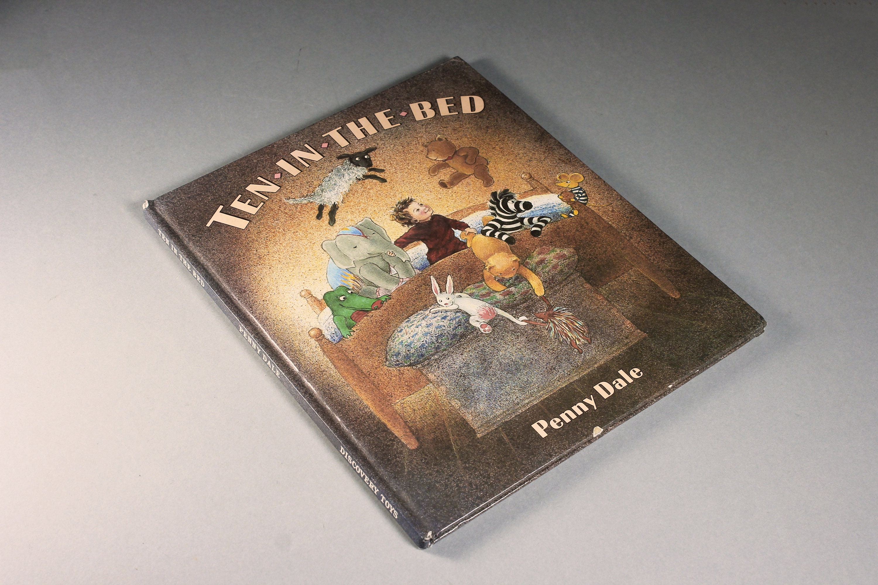 A wonderful children's hardcover book called Ten In The Bed by Penny Dale. This book has beautiful illustrations.