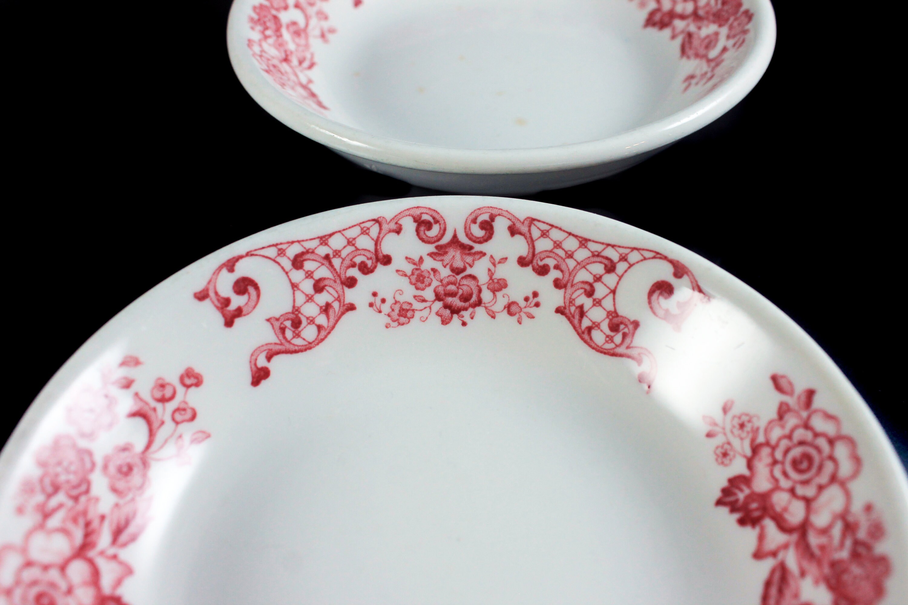 Fruit Bowls, Syracuse China, Restaurant Grade, Red Floral, Set of 2, Dinnerware
