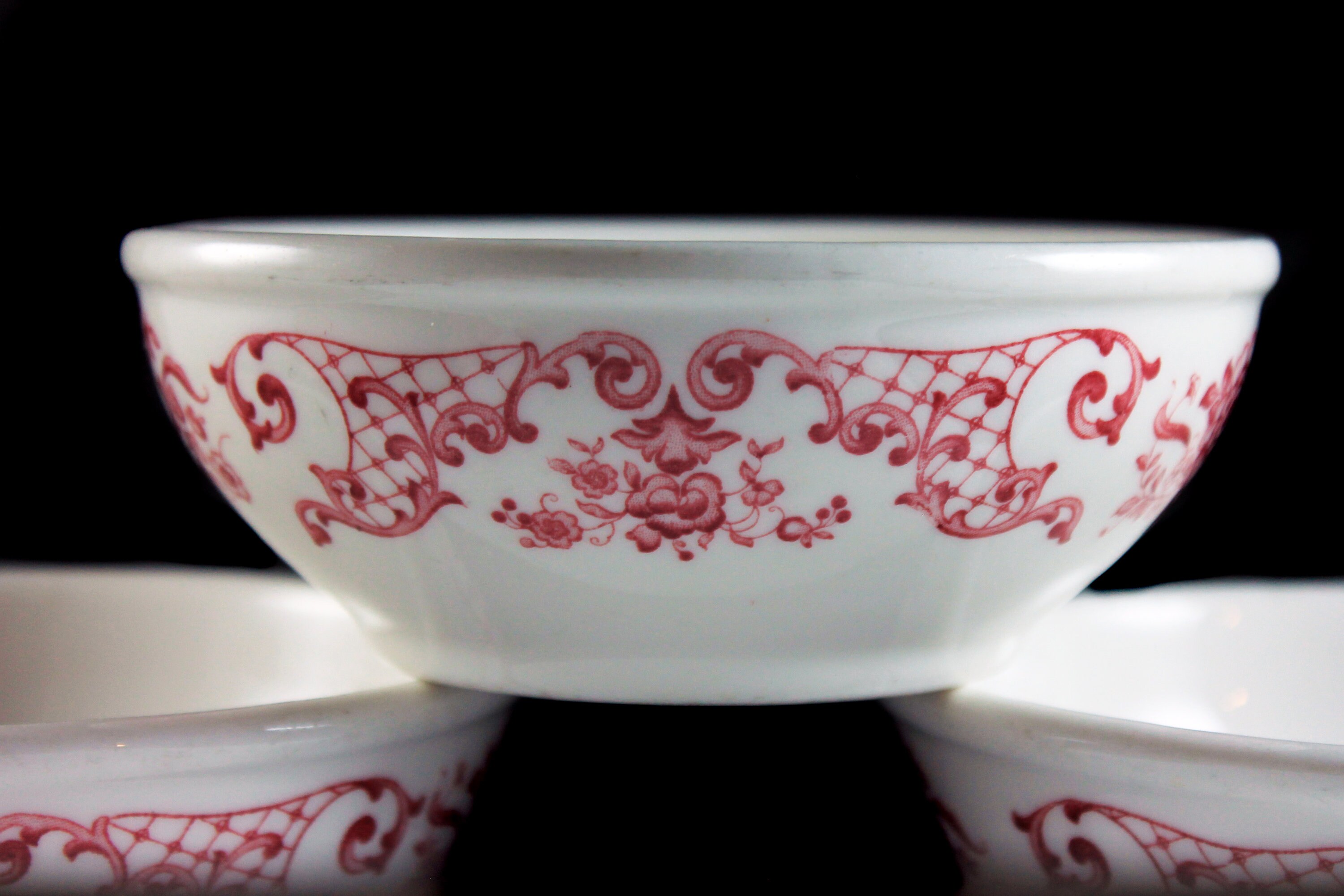 Cereal Bowl, Syracuse China, Restaurant Grade, Soup Bowls, Red Floral, Set of 3, Dinnerware
