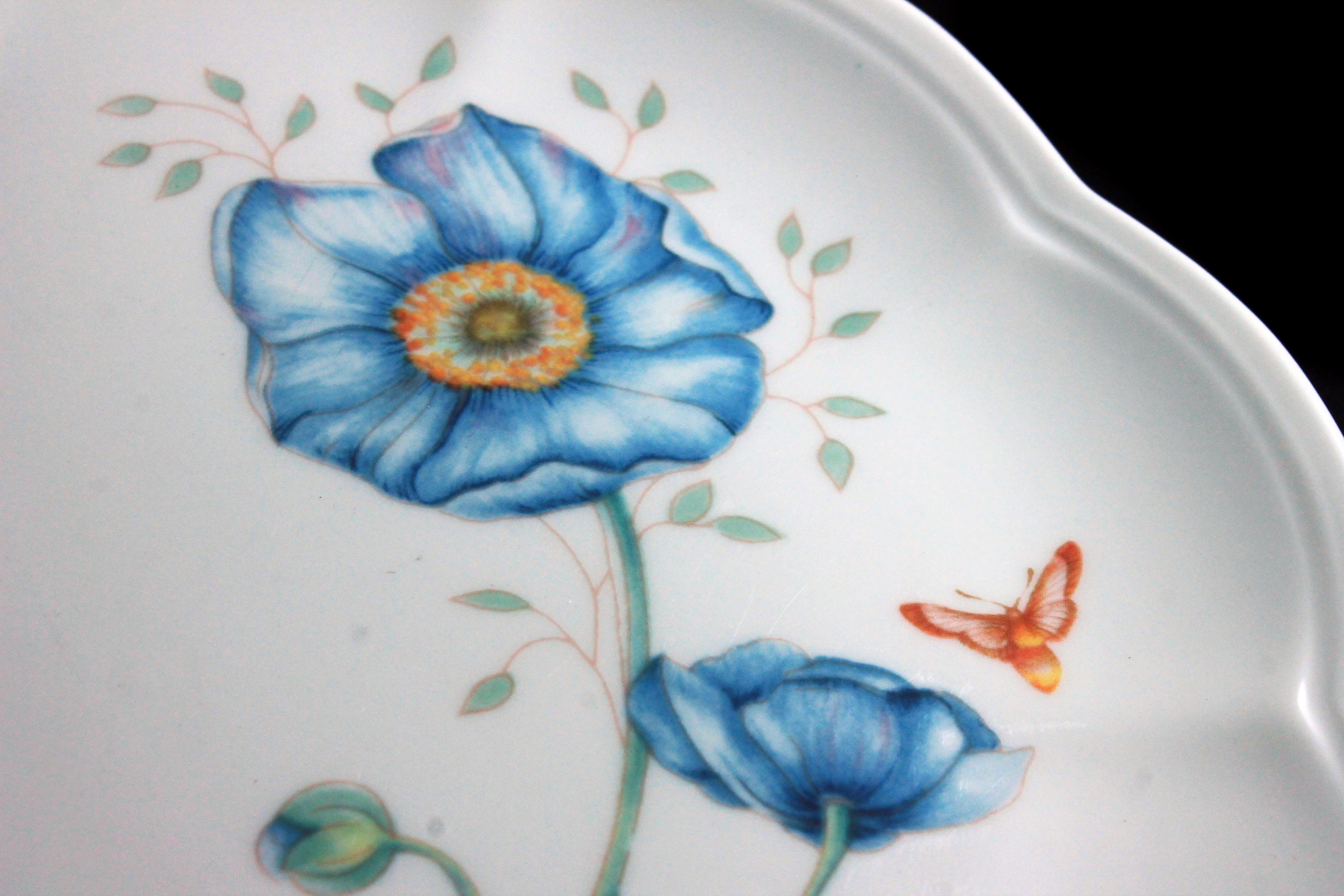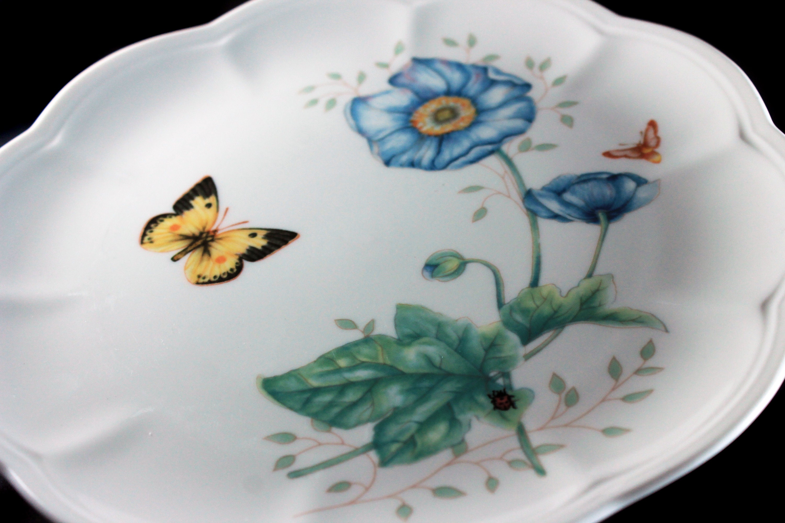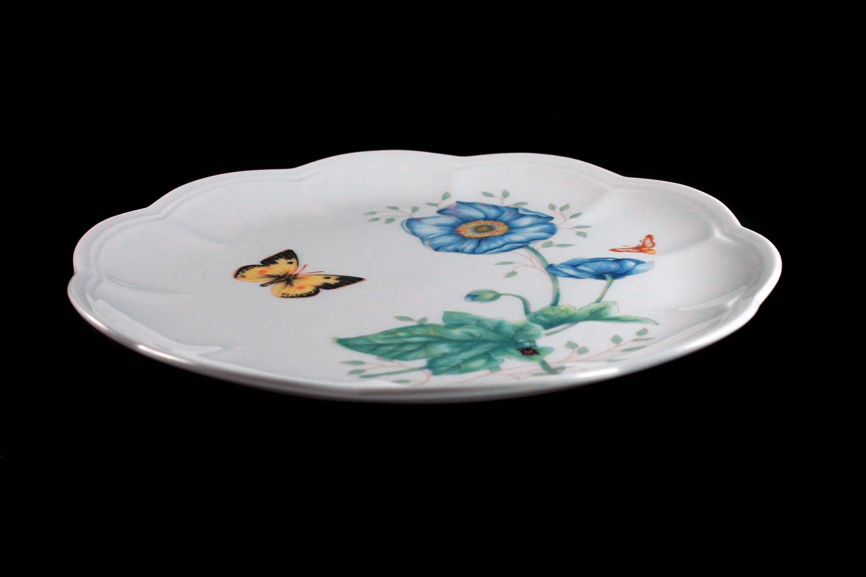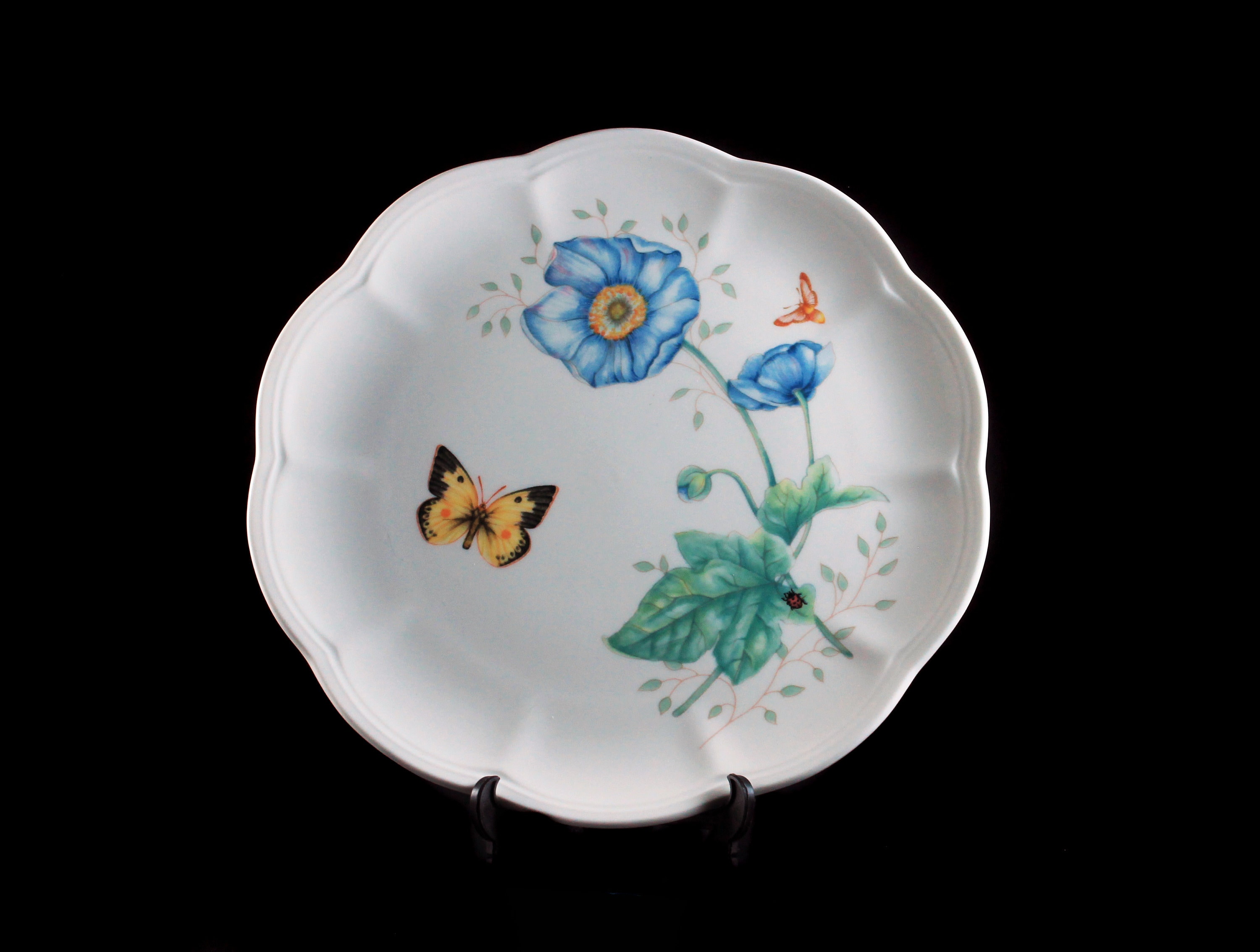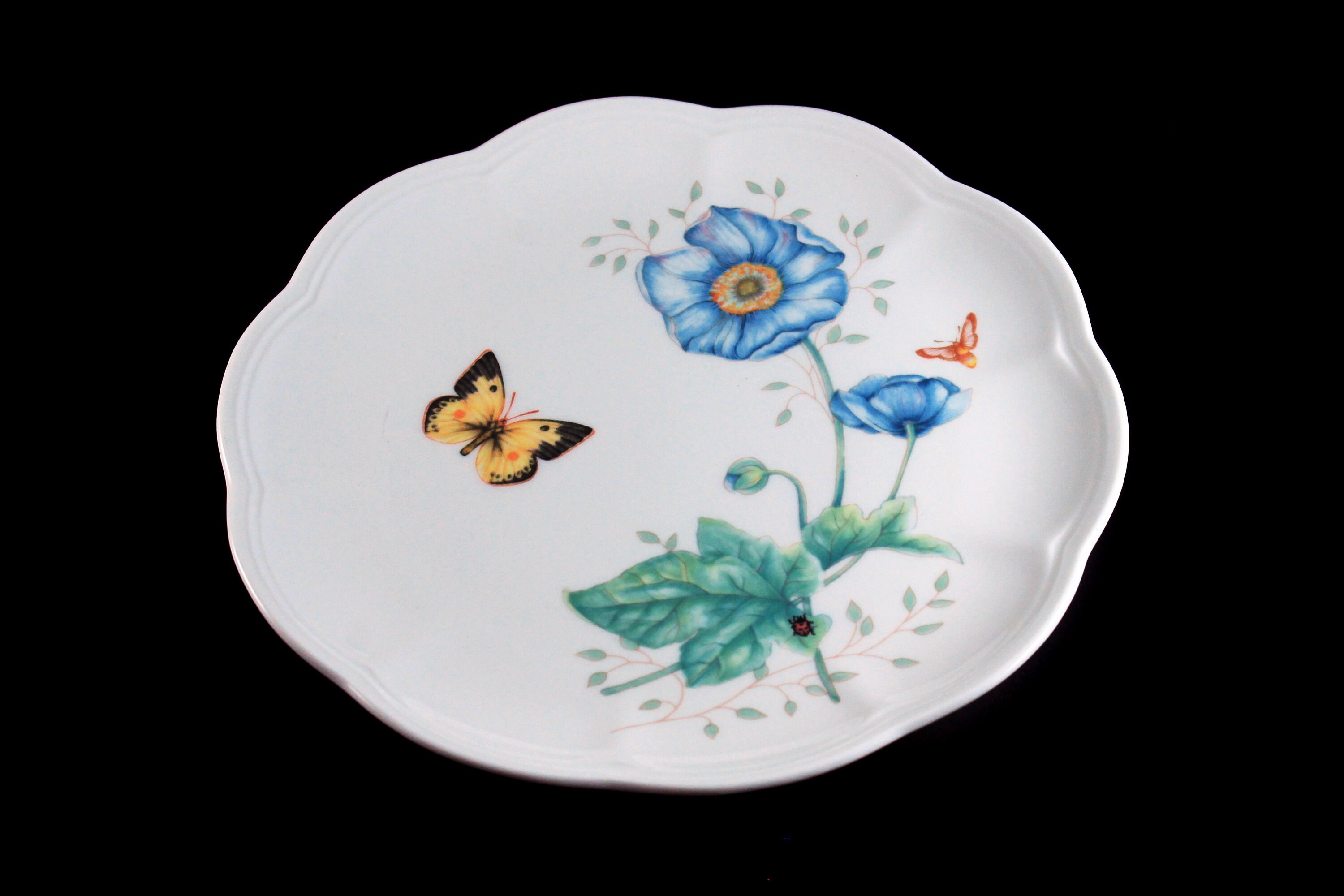 Luncheon Plate, Lenox, Butterfly Meadow, Monarch, Blue Floral, Butterfly, Ladybug and Bee
