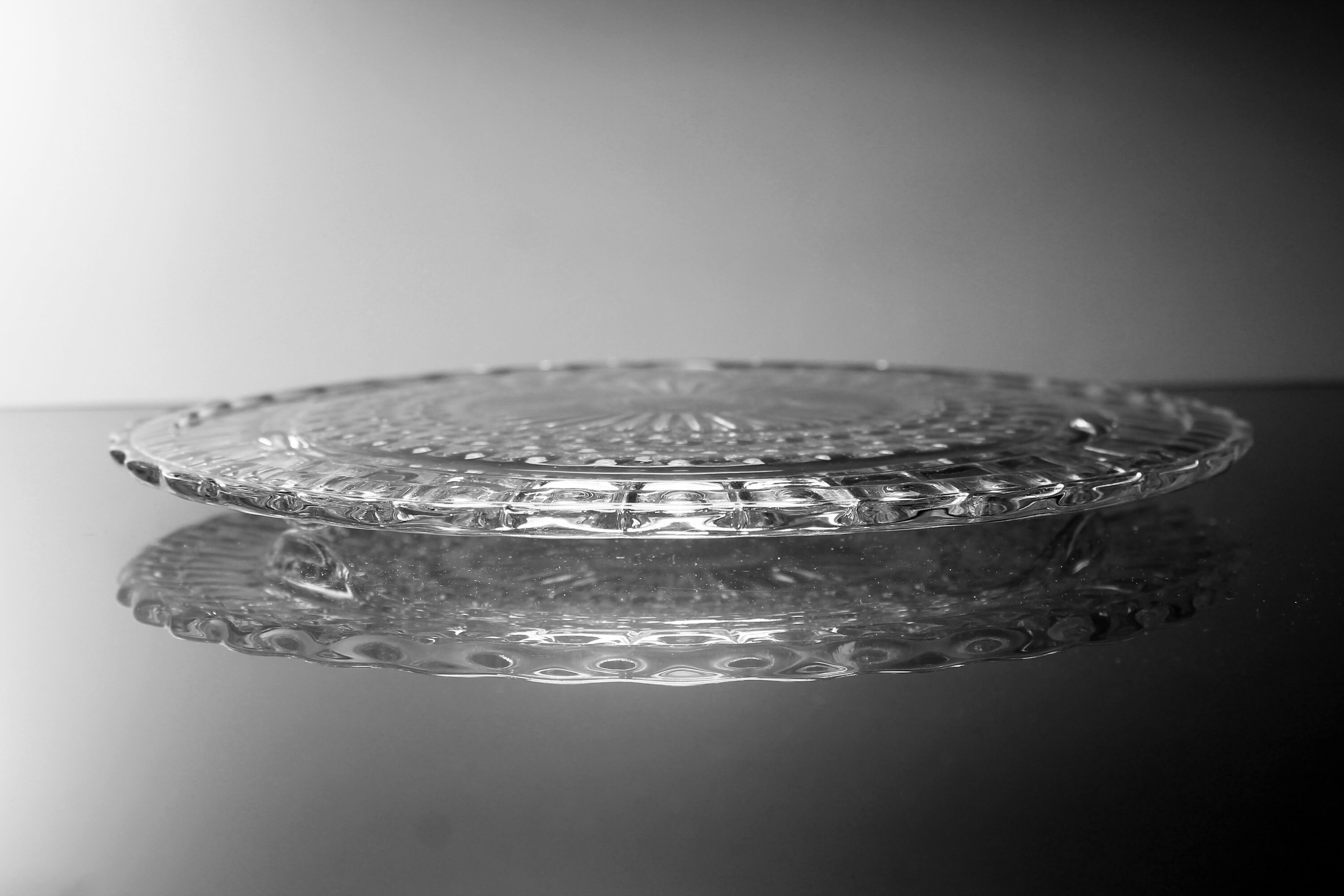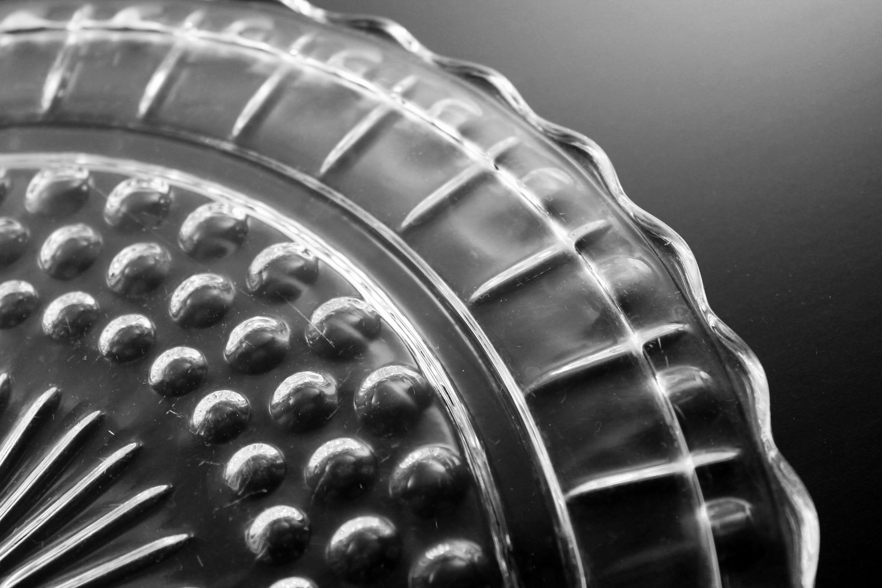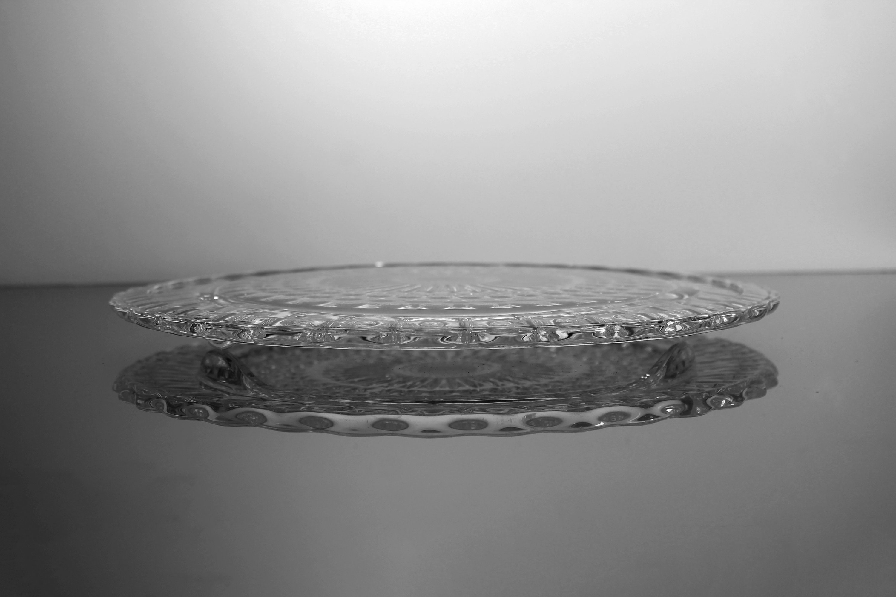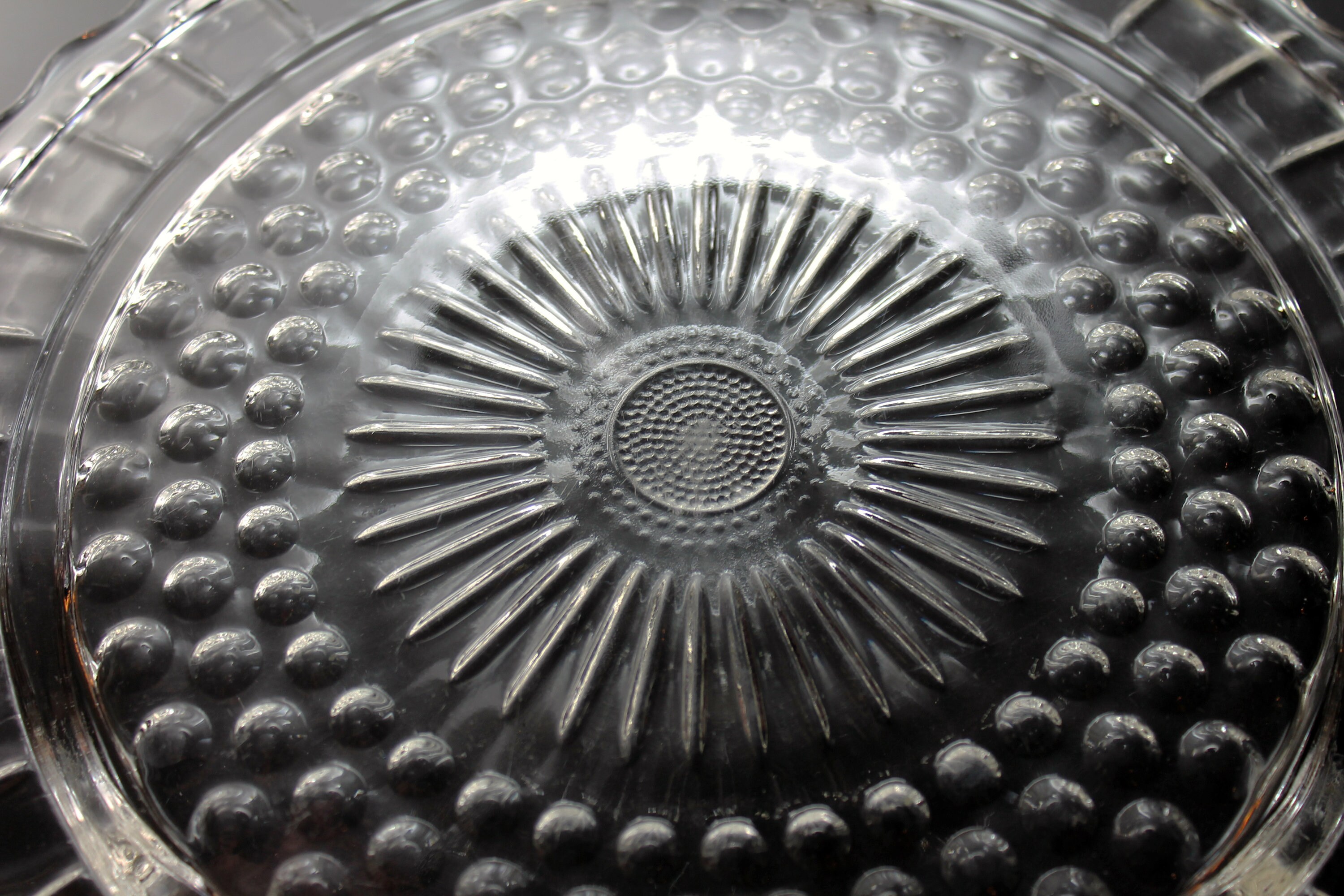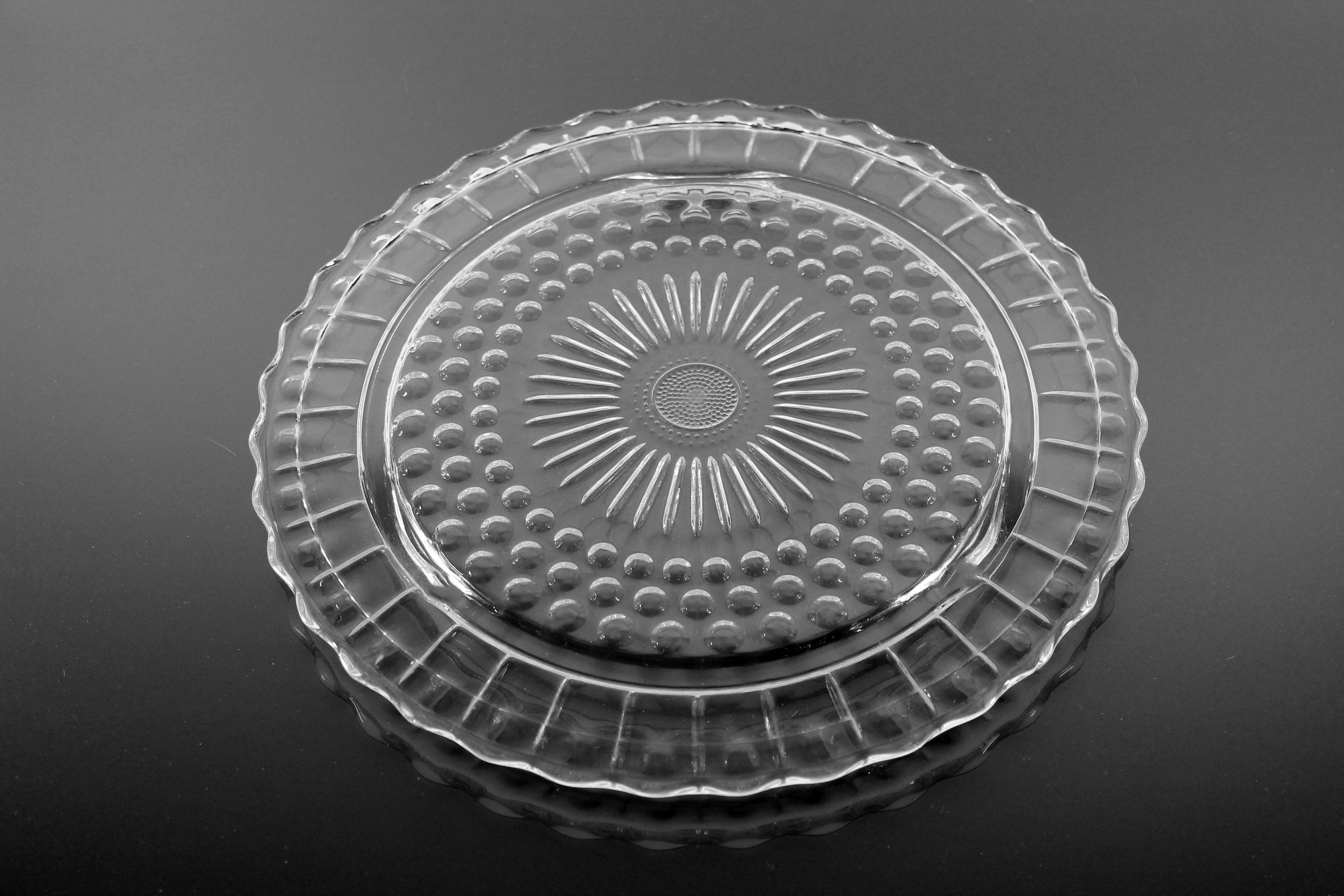 Footed Cake Plate, Federal Glass, Sunburst, Dots and Panels, Clear Glass, Dessert Plate