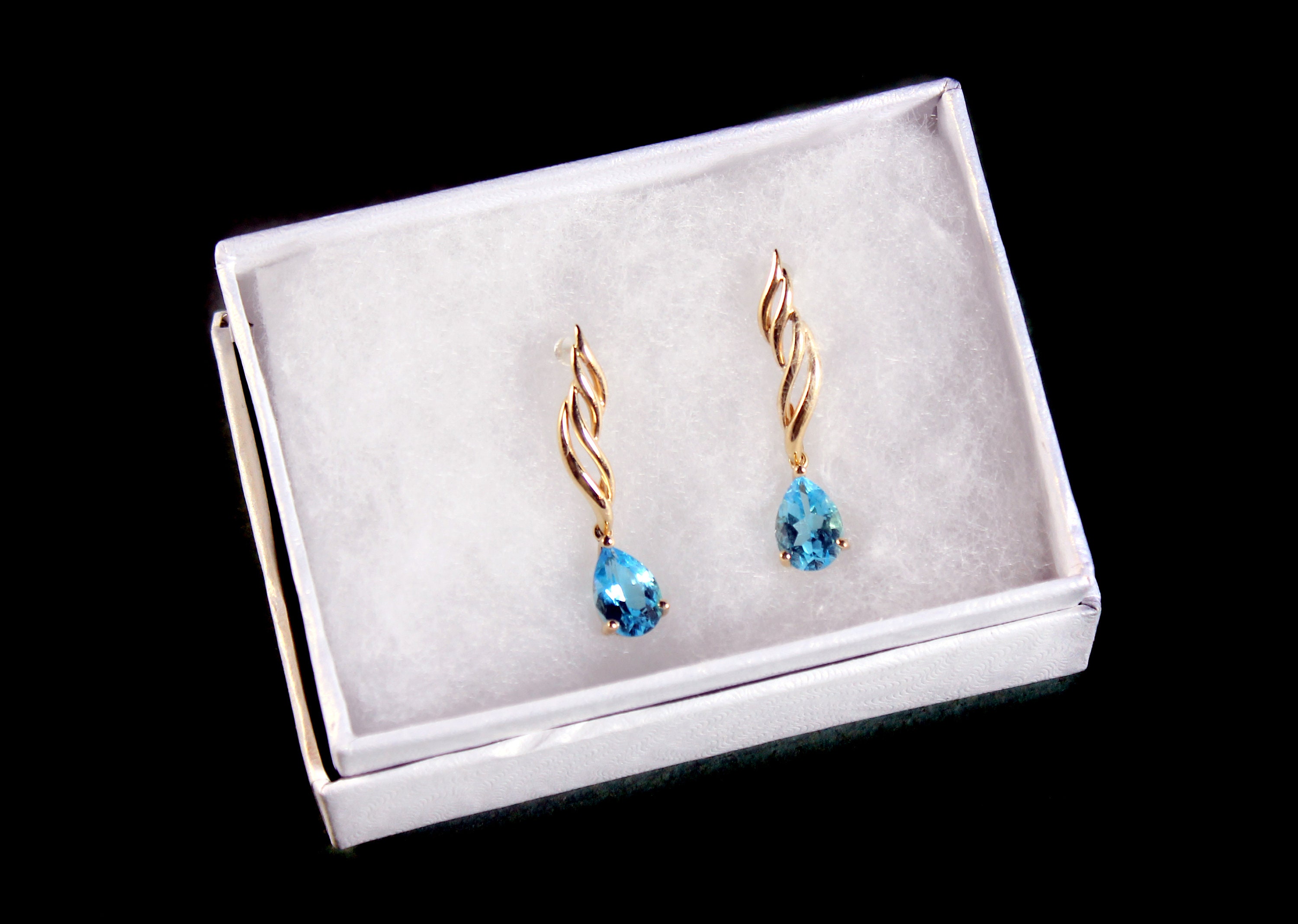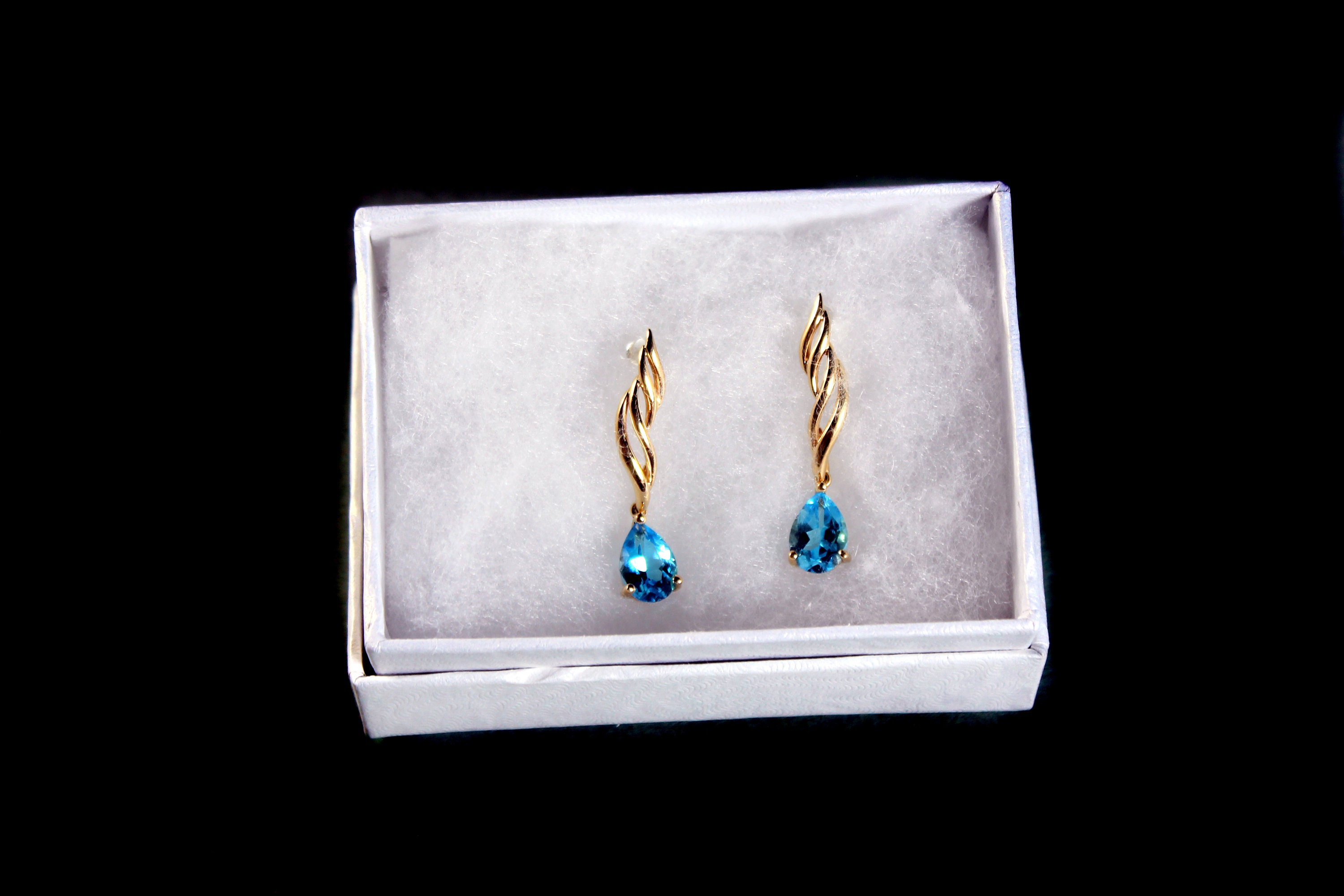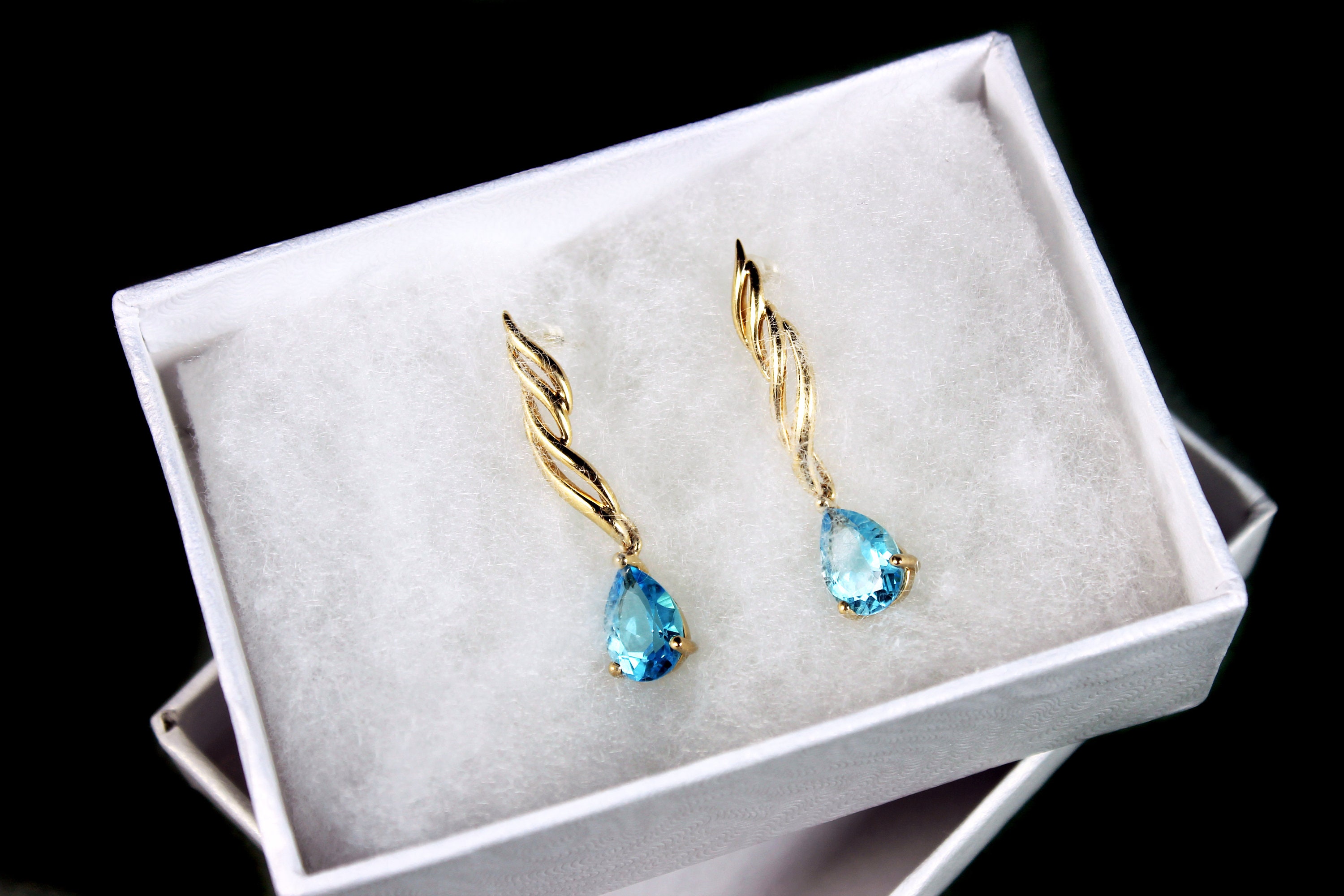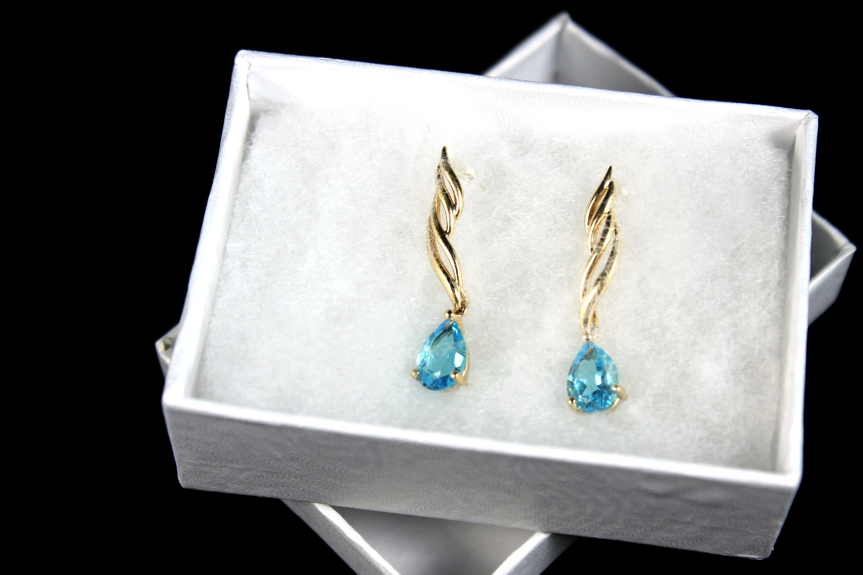 Aquamarine Earrings, P14K Gold, Aquamarine Stone, Post Earrings, Blue, Yellow Gold