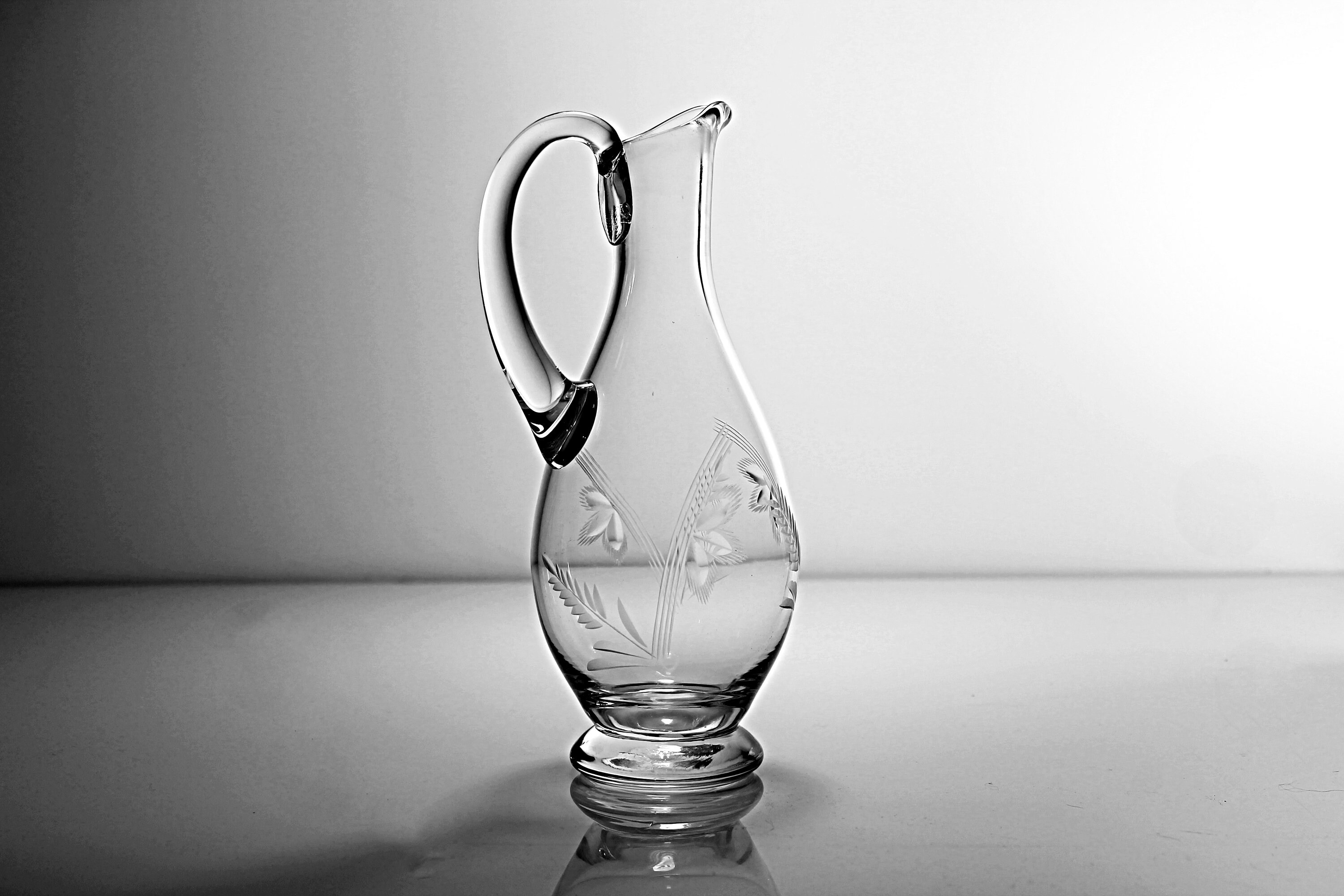 Etched Glass Cruet, Leaf Pattern, 7 Inch, Clear Glass, No Stopper