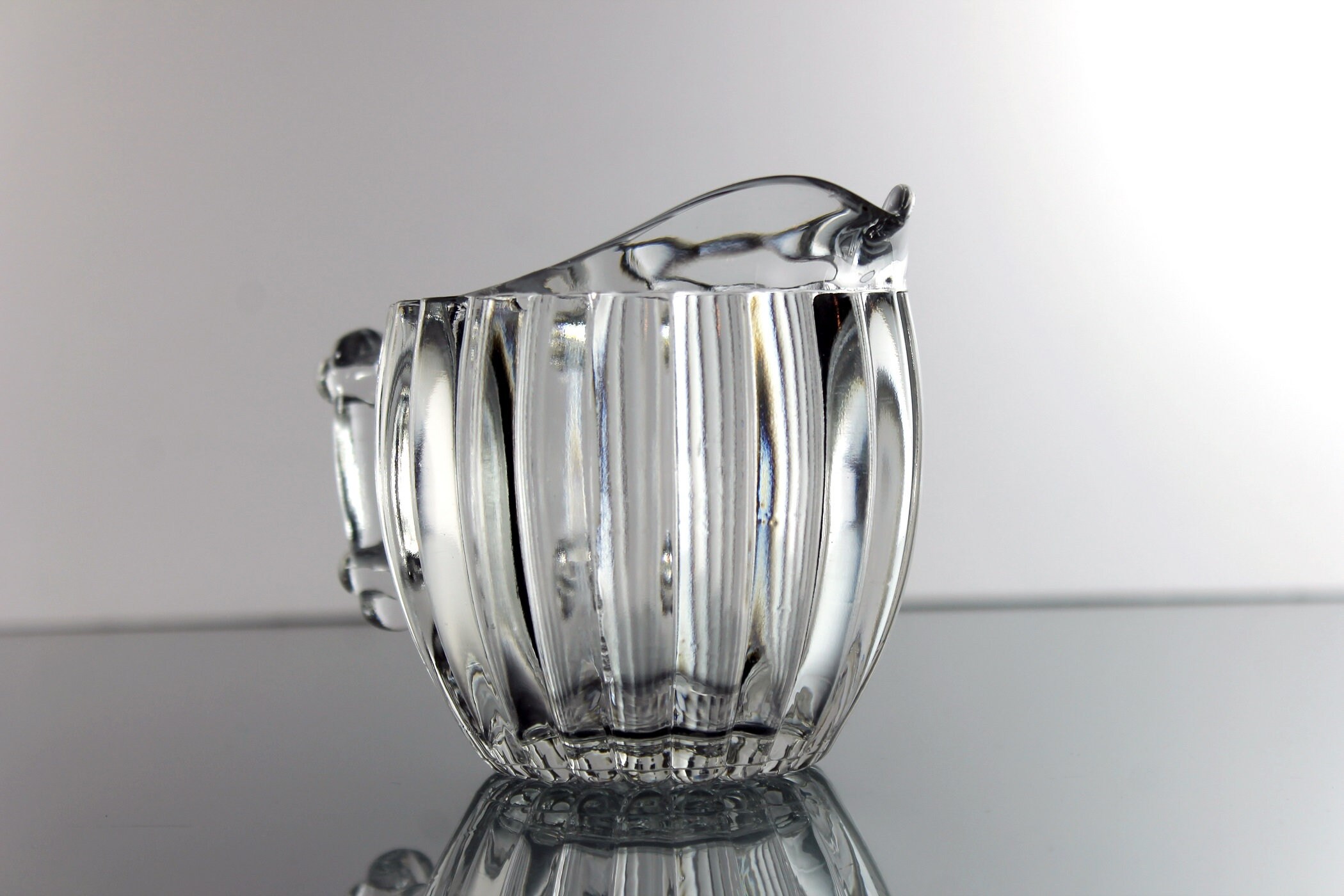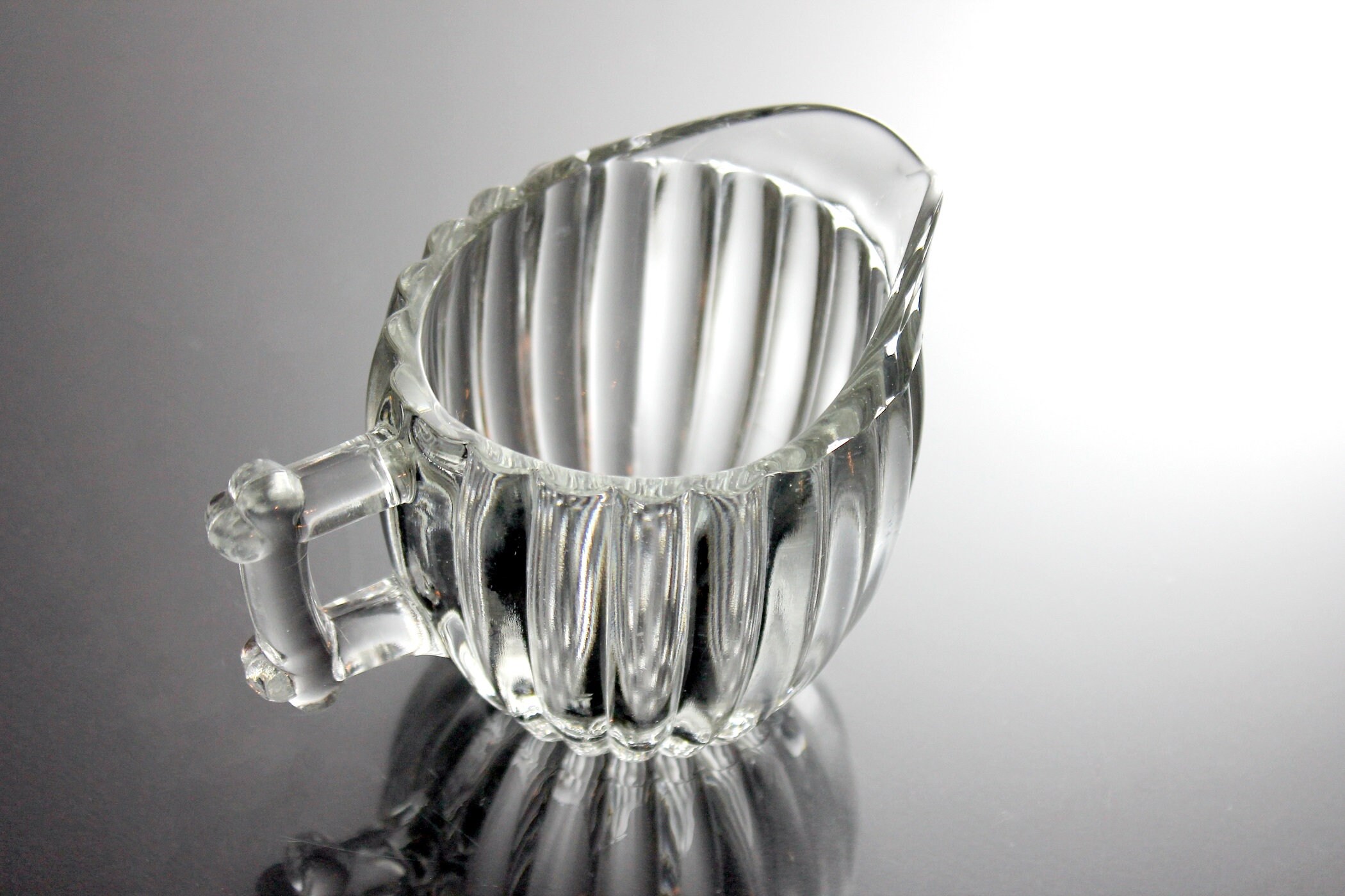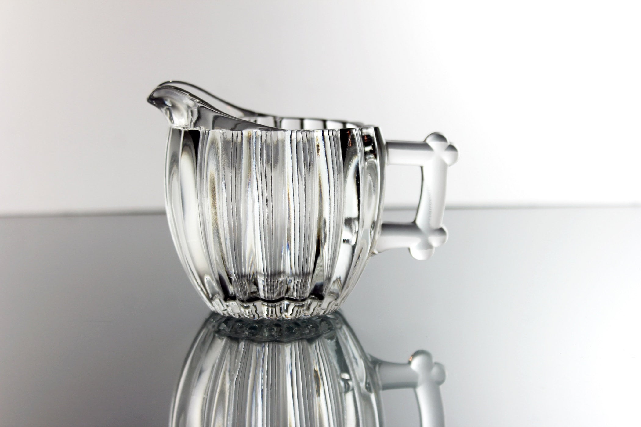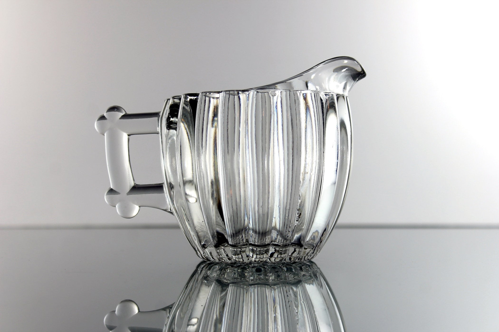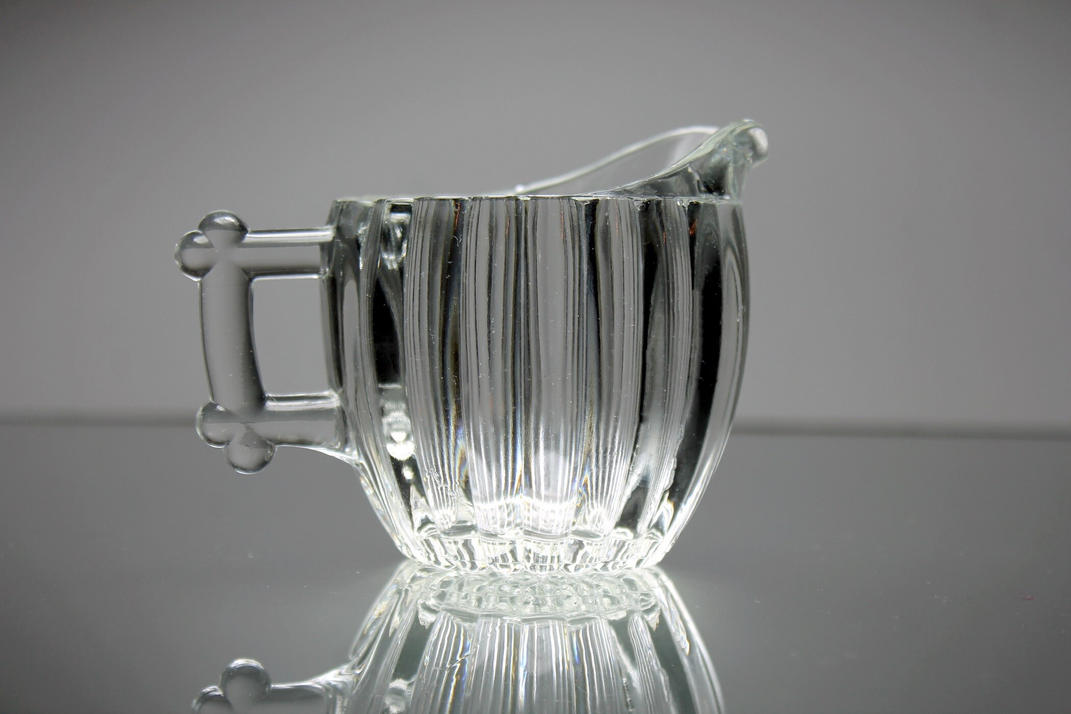 Jeannette Glass Creamer, National Pattern, Depression Glass, Clear Pressed Glass, Rib and Dot Design