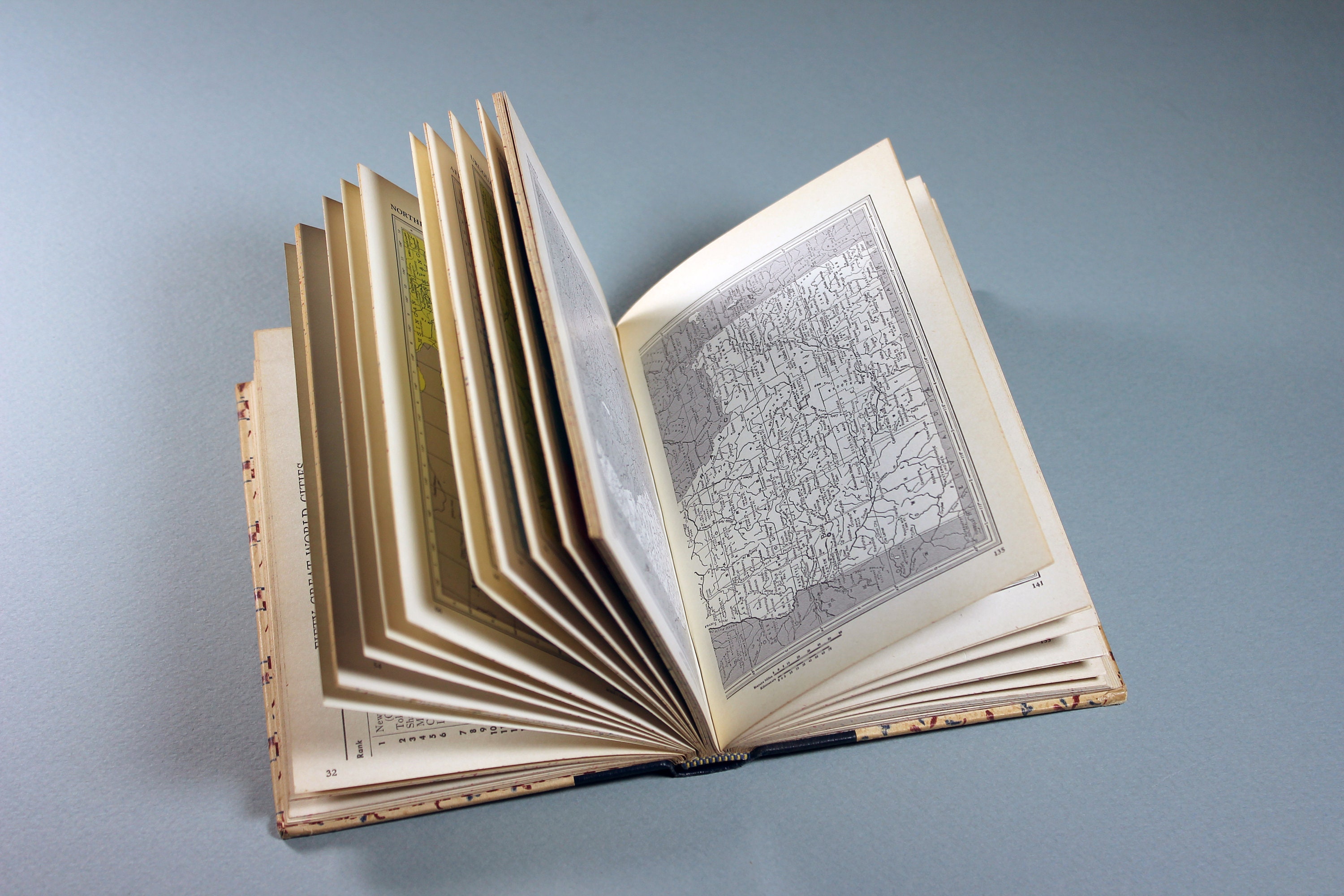 A wonderful first edition hardcover collectible edition of Rand McNally 1951 World Atlas. This book is pocket size for easy carrying around. Maps are in color and in black and white. A fantastic gift for a collector of old maps or old books. A fun way to see how the world has changed over the years.
