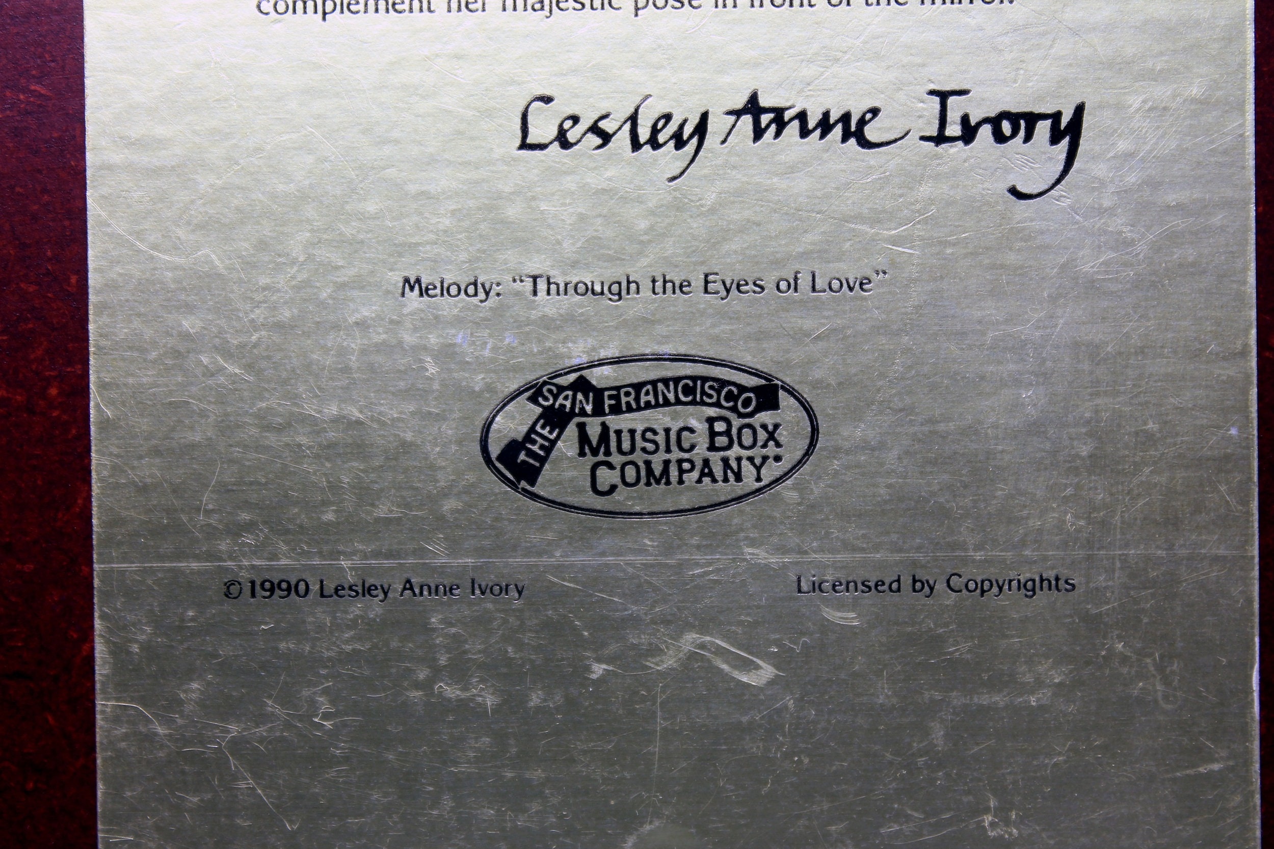 The tune it plays is called 'Through The Eyes Of Love' The music box works perfectly.
