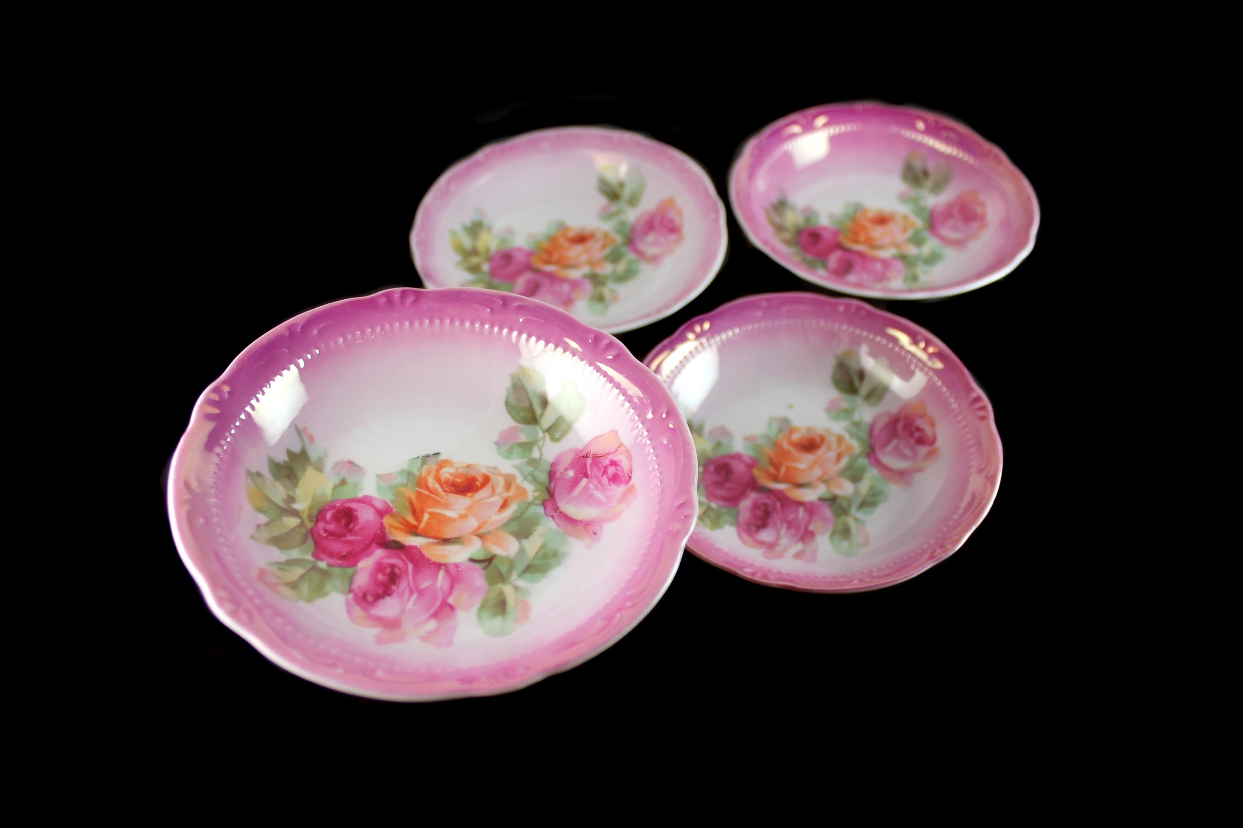 Antique Berry Bowls, Otto Grunert, Germany, Fruit Bowls, Dessert Bowls, Rose Pattern, Set of 4