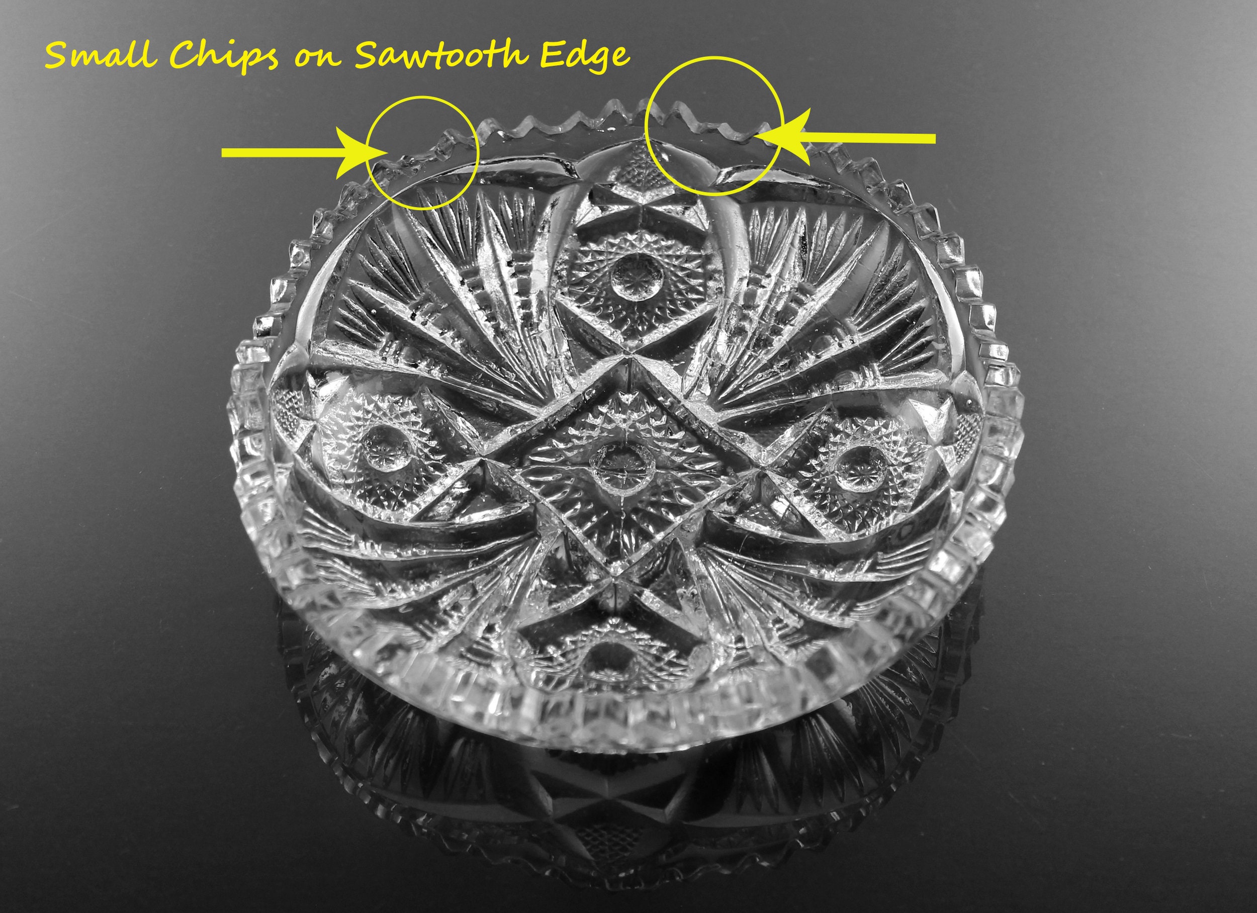 This wonderful antique is in very good condition. There are no cracks but it does have some chips on the sawtooth edge which is to be expected of antique glassware. This dates from the early 1900s and is approximately 130 years old.