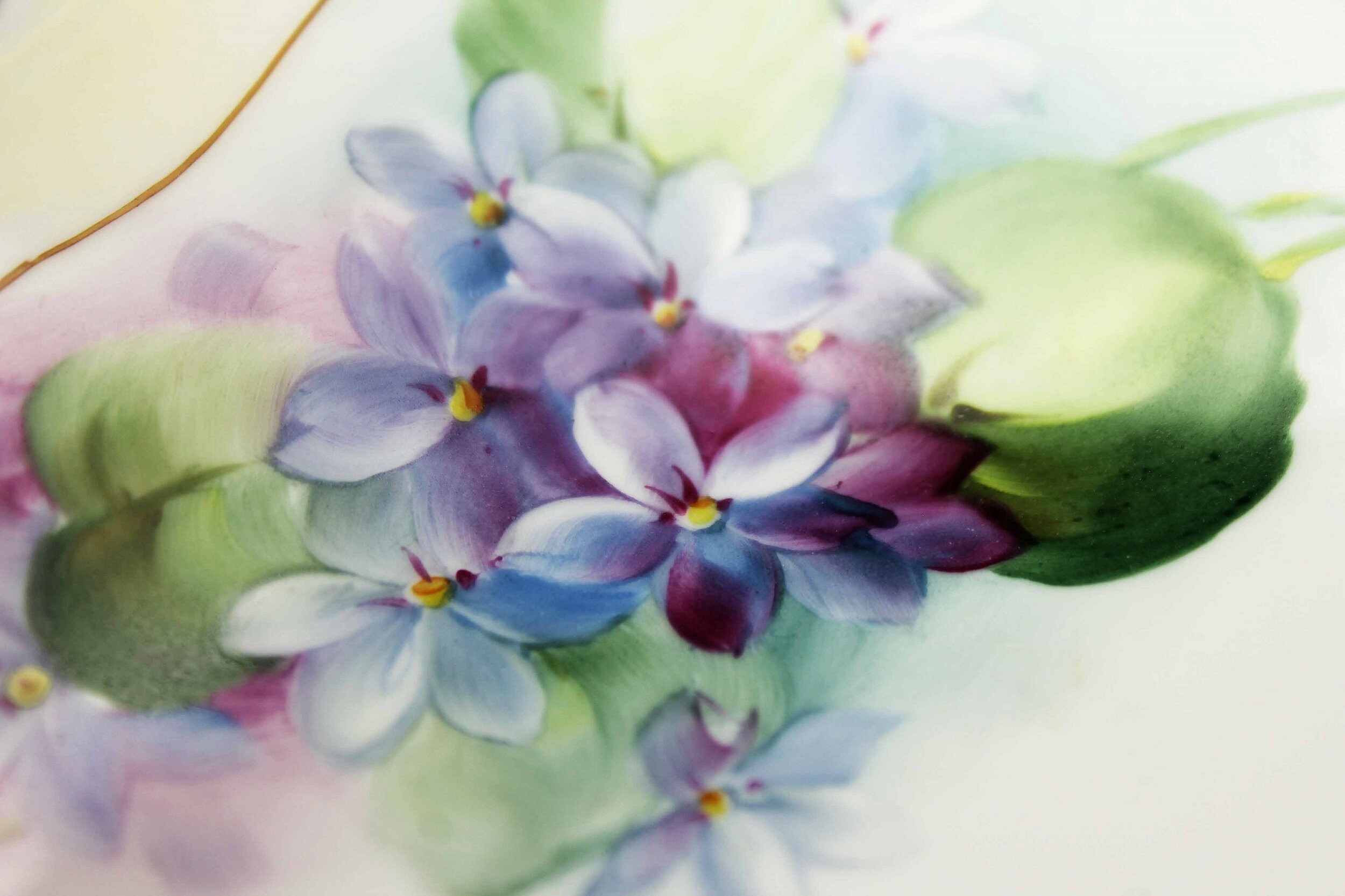 A beautiful antique oval Nippon bowl. It has the Nippon Rising Sun Mark. The pattern is of hand-painted violets and the colors are very delicate. This elegant bowl would make a great trinket bowl on a vanity, a wonderful candy or nut dish, or as a celery or banana bowl on a buffet or sideboard. A wonderful display piece as well.