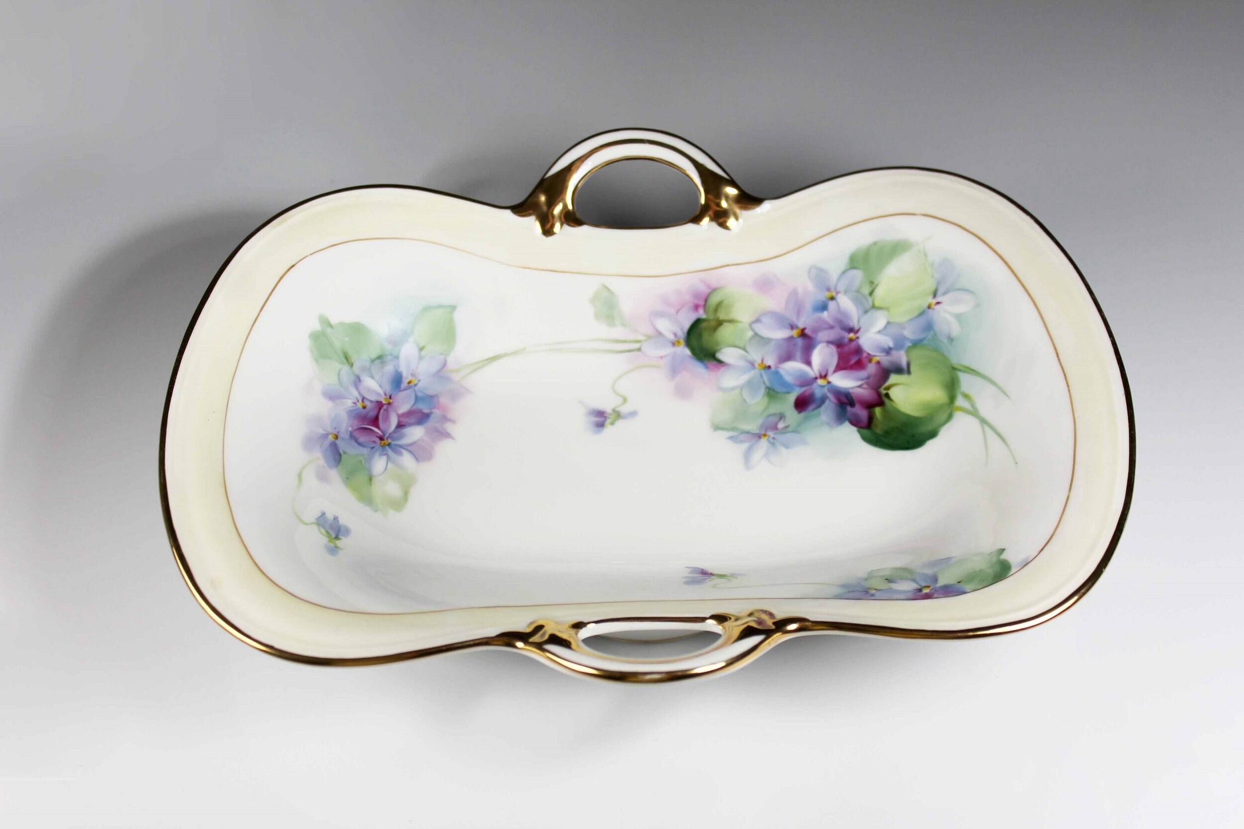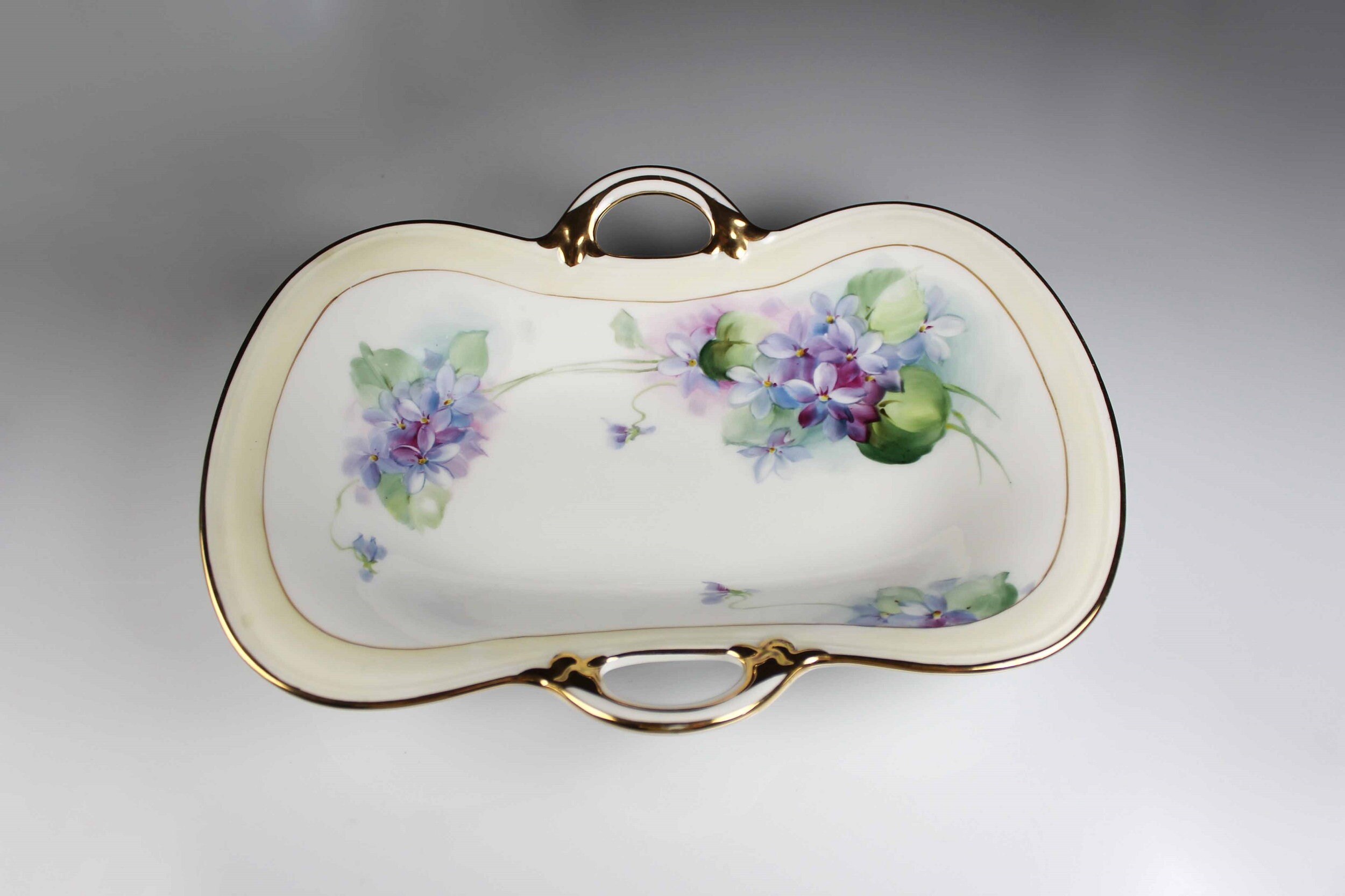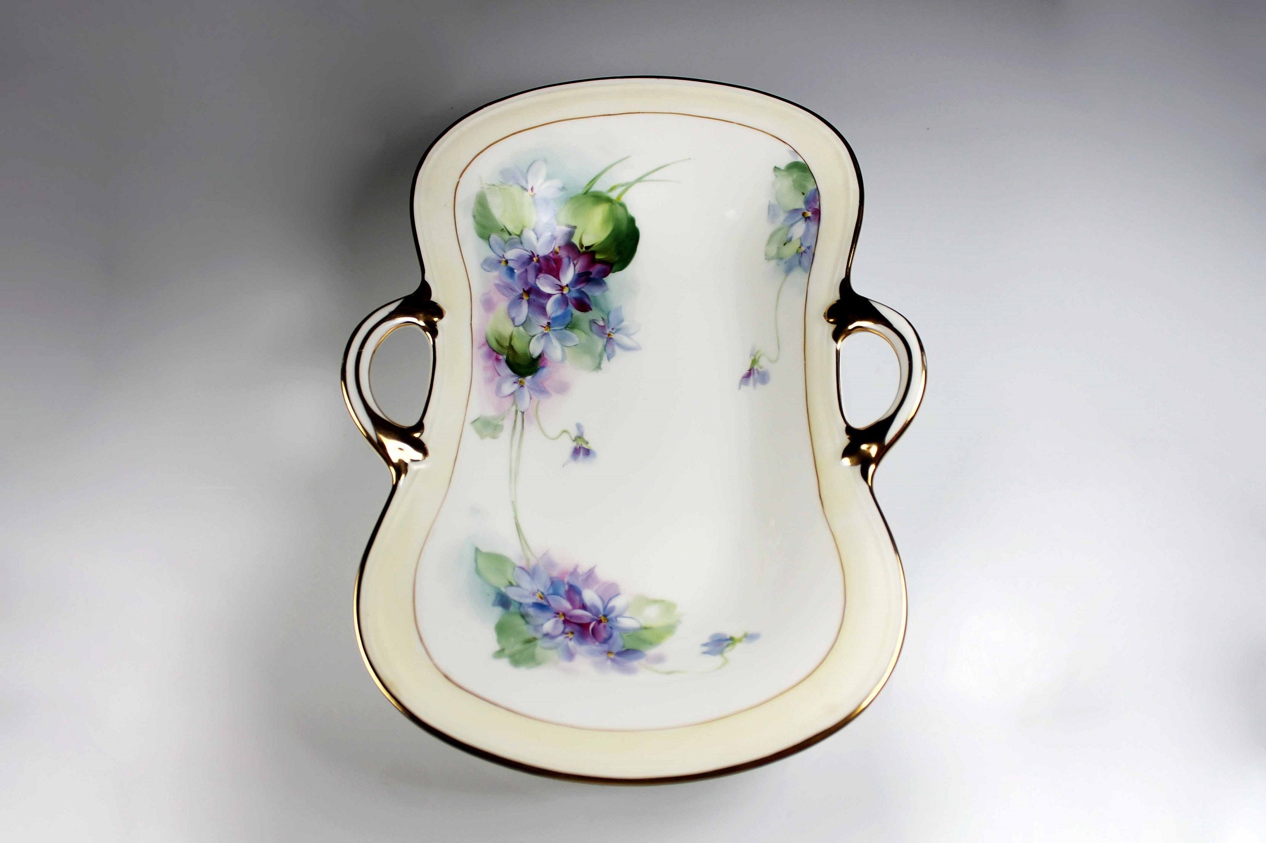 Antique Oval Nippon Bowl, Celery Dish, Hand Painted Violets, Gold Trimmed