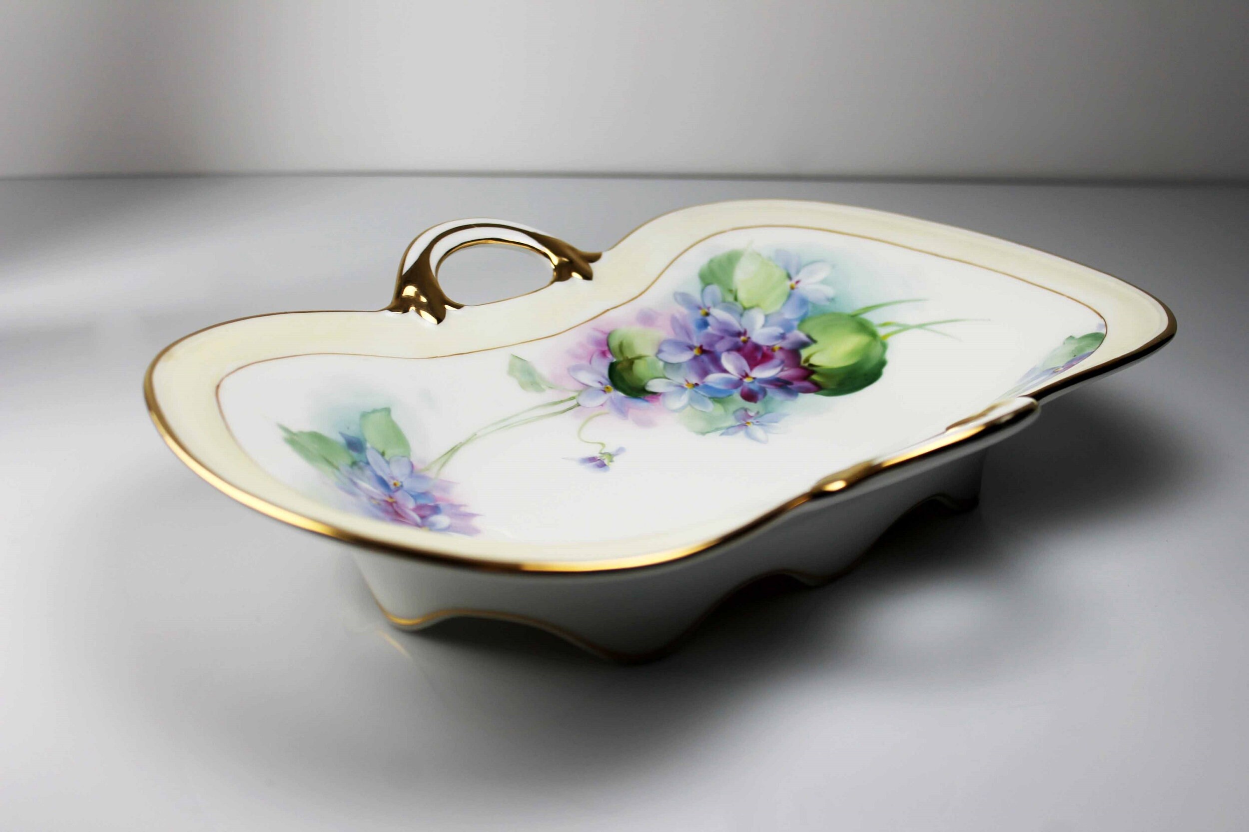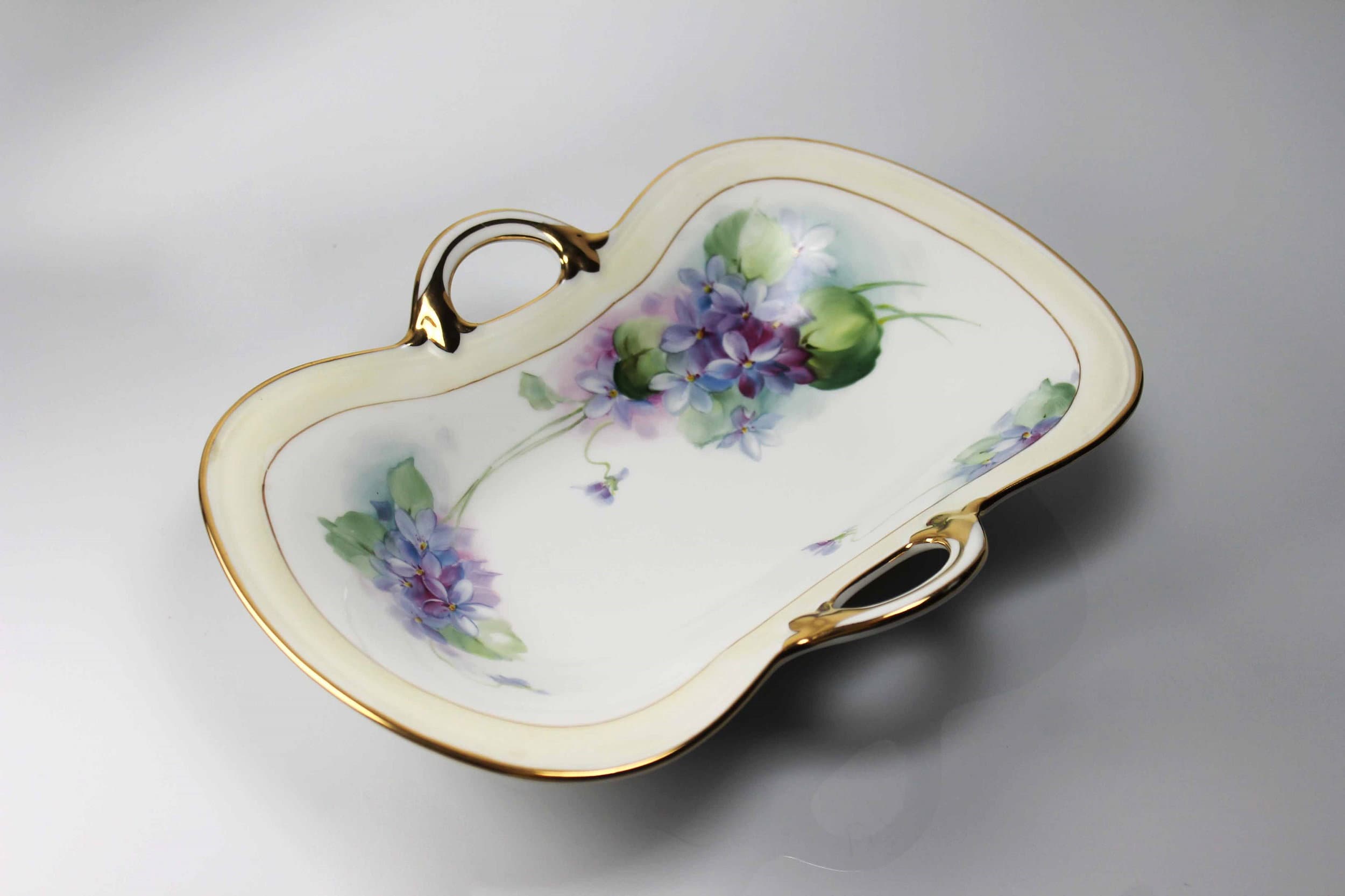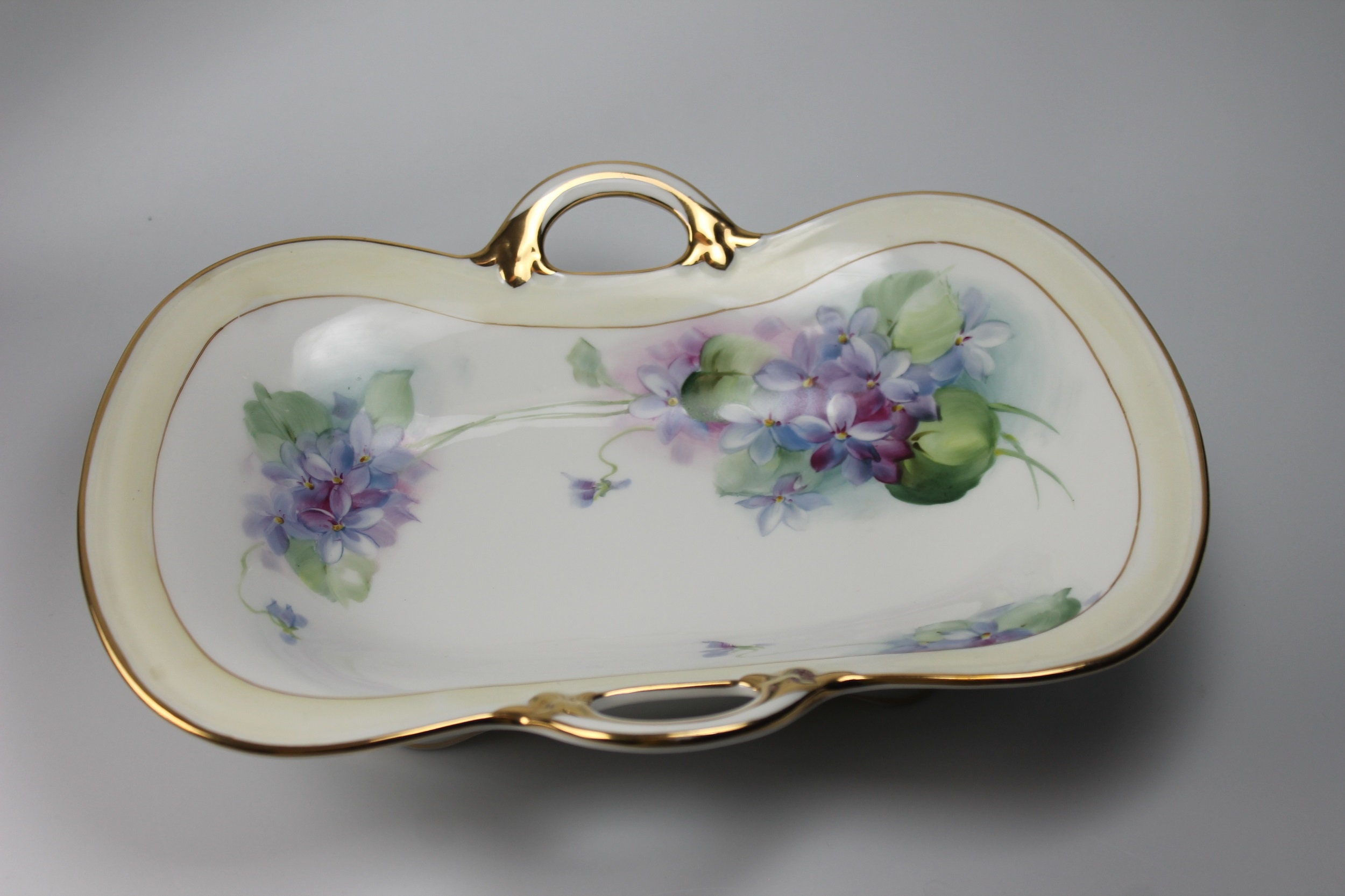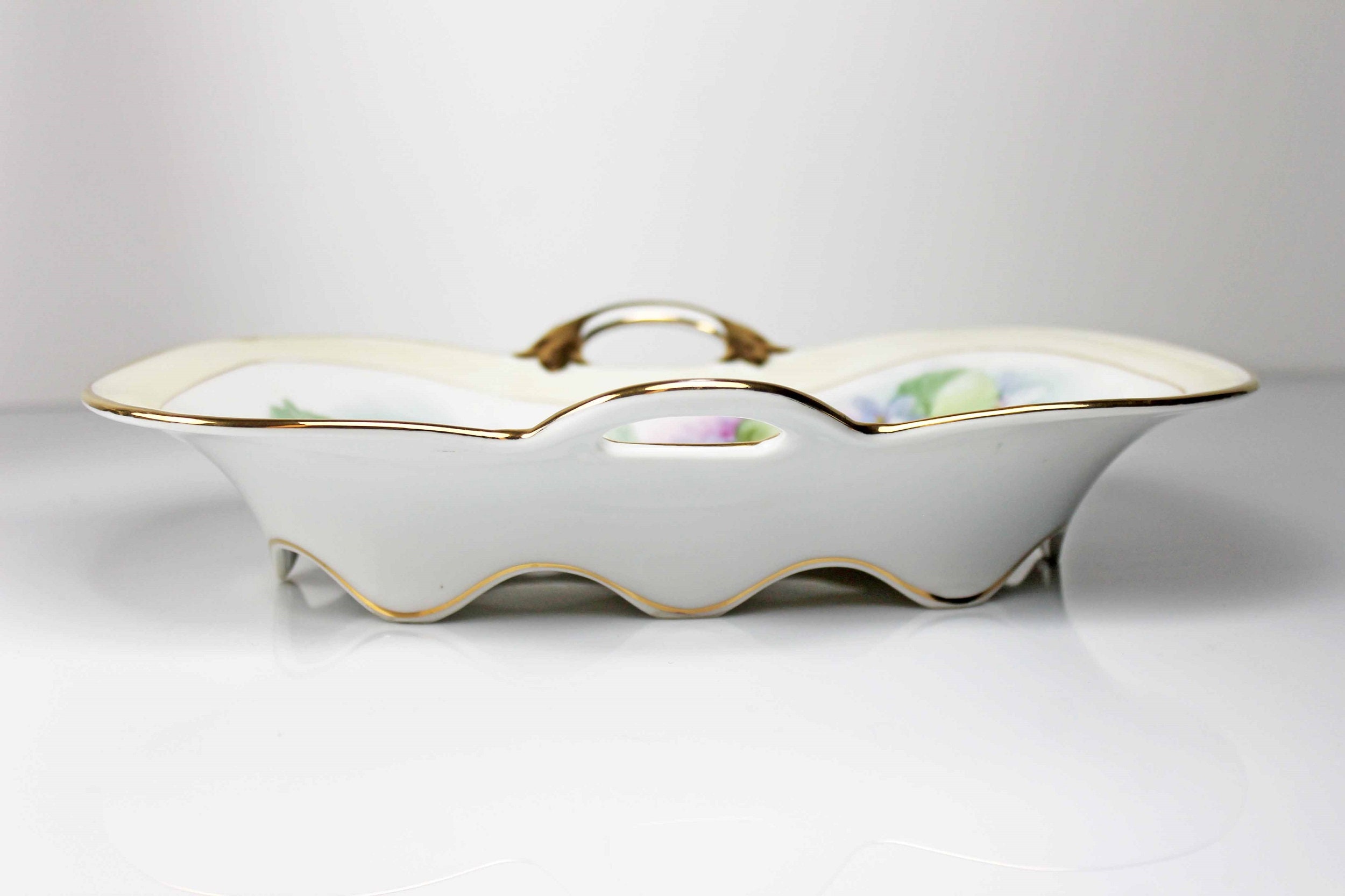 Antique Oval Nippon Bowl, Celery Dish, Hand Painted Violets, Gold Trimmed