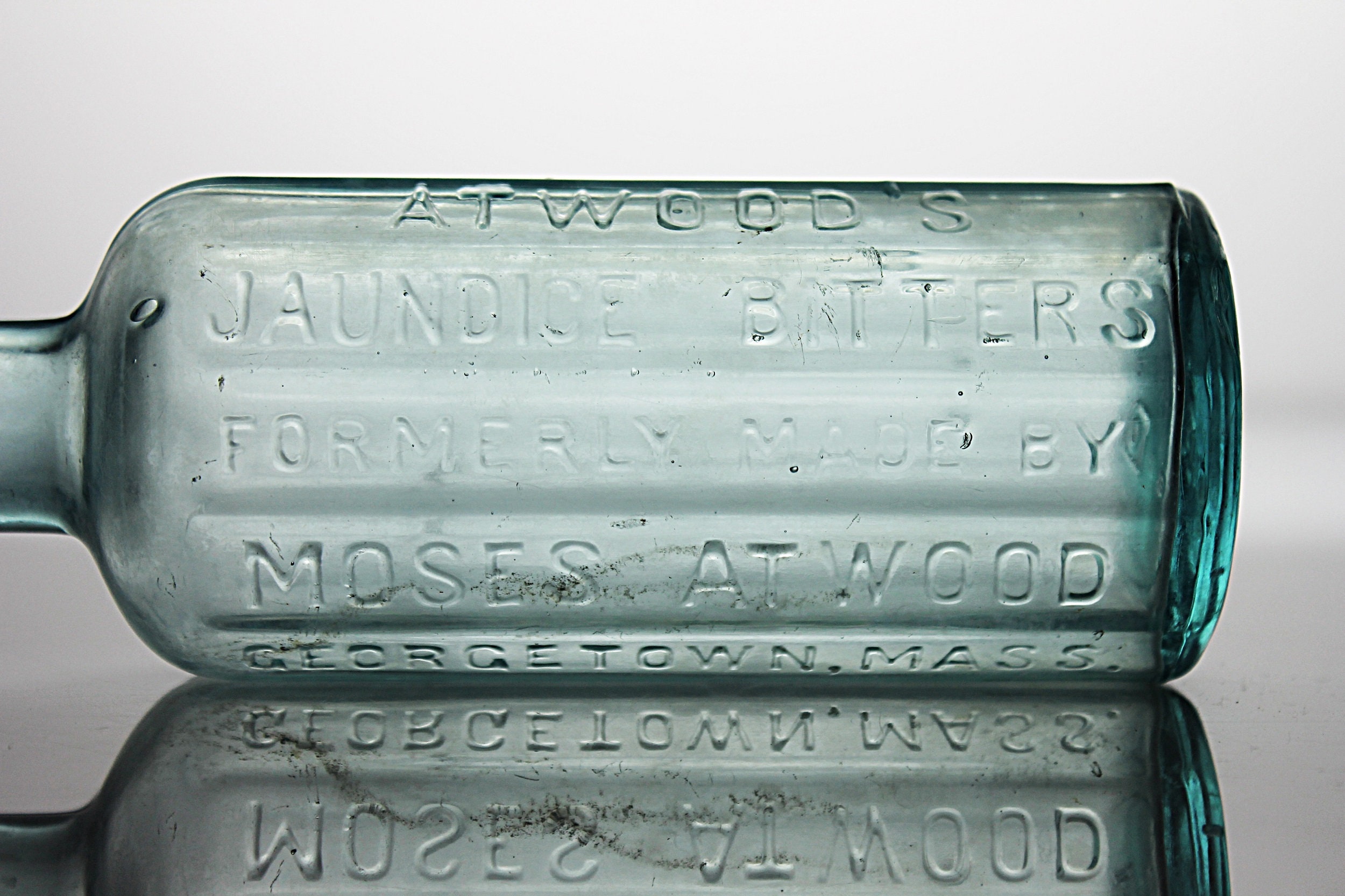 Antique Bottle, Atwood's Jaundice Bitters, Aqua, Medicine Bottle, Cure, Patent Medicine, Quack Medicine, Collectible