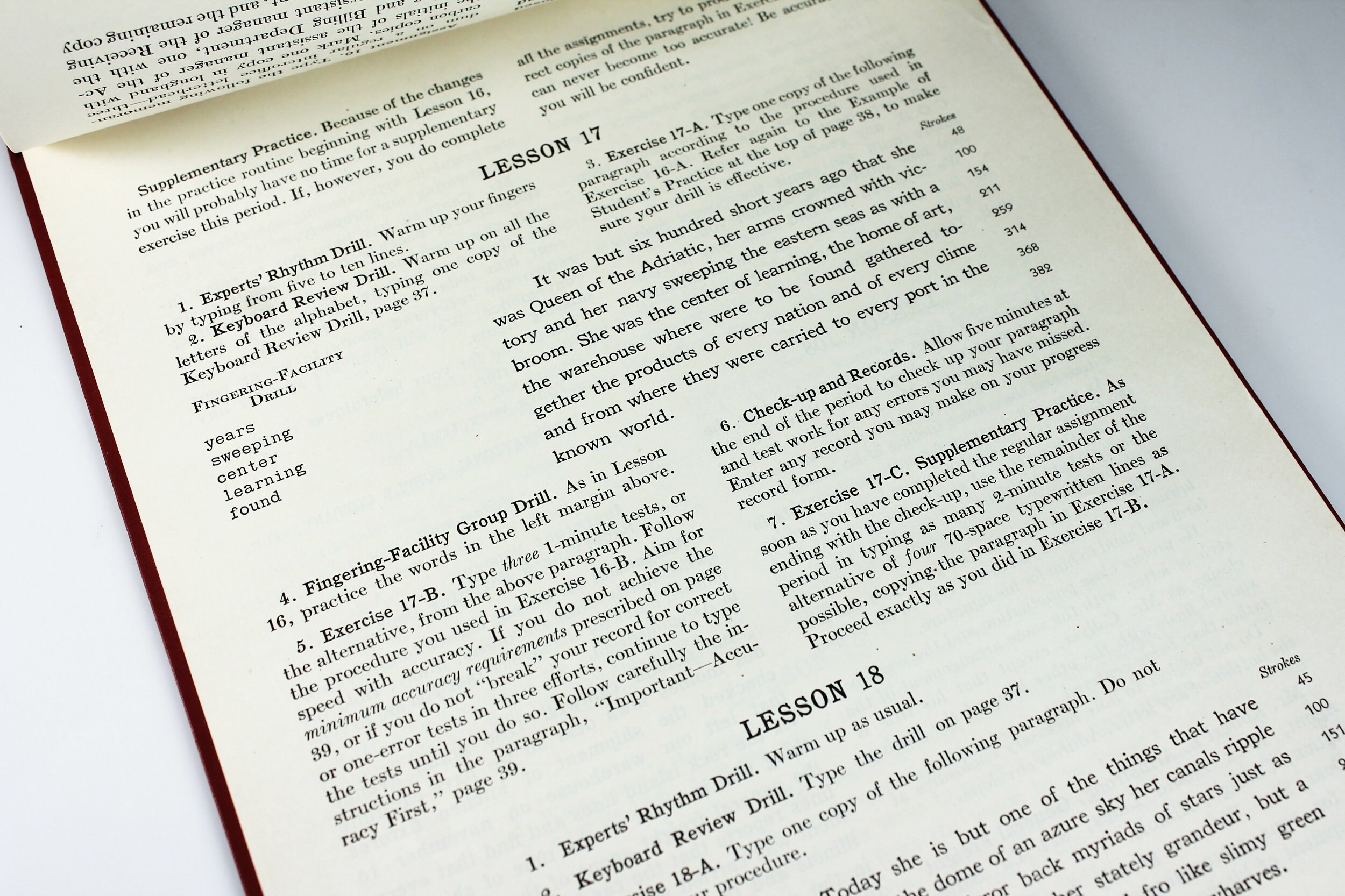 A wonderful book which taught students how to use a typewriter properly. In addition, writing and accuracy exercises are also detailed in the book in order to help students practice. This would be great to help learn to type on a computer keyboard as well.