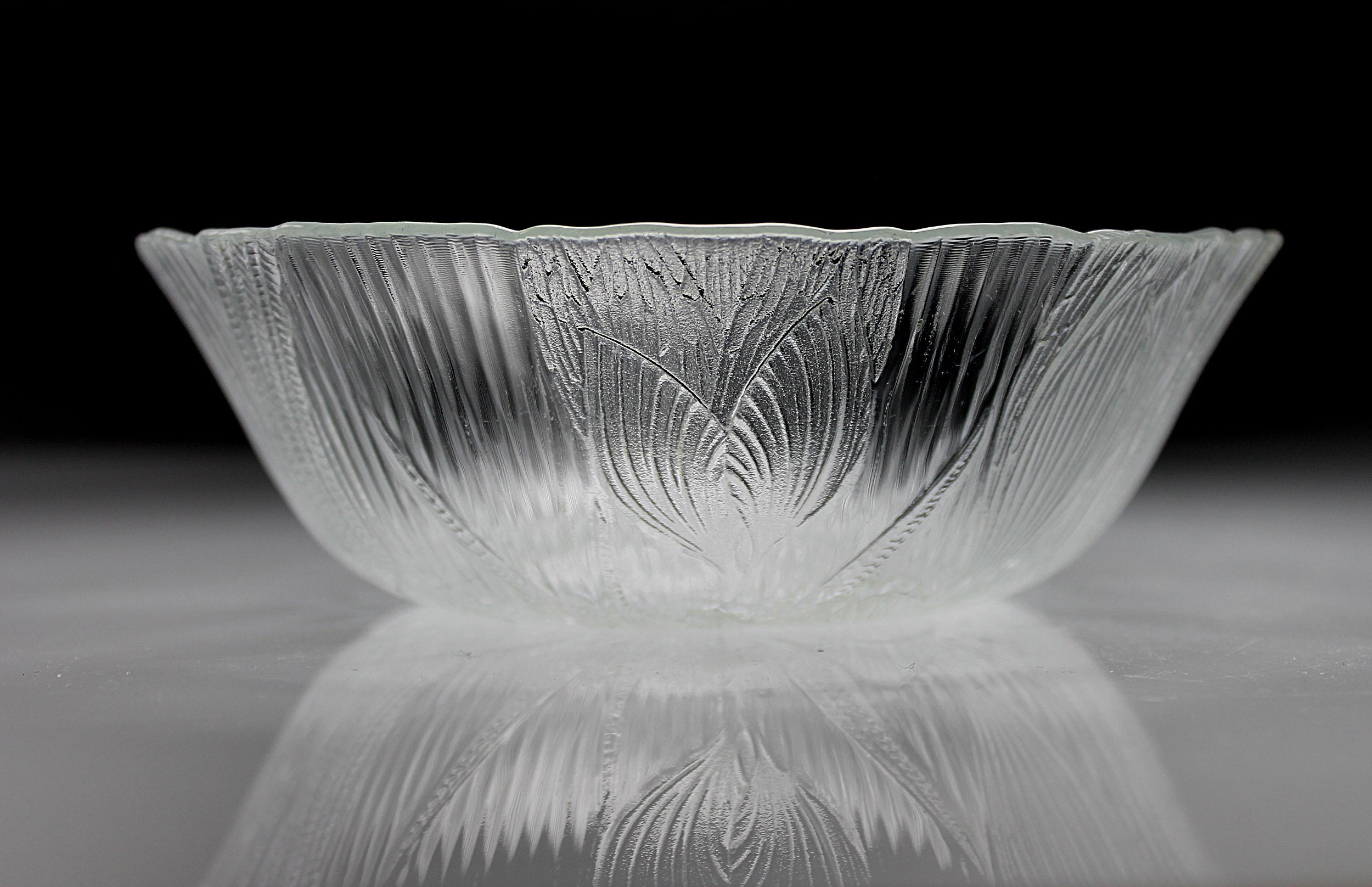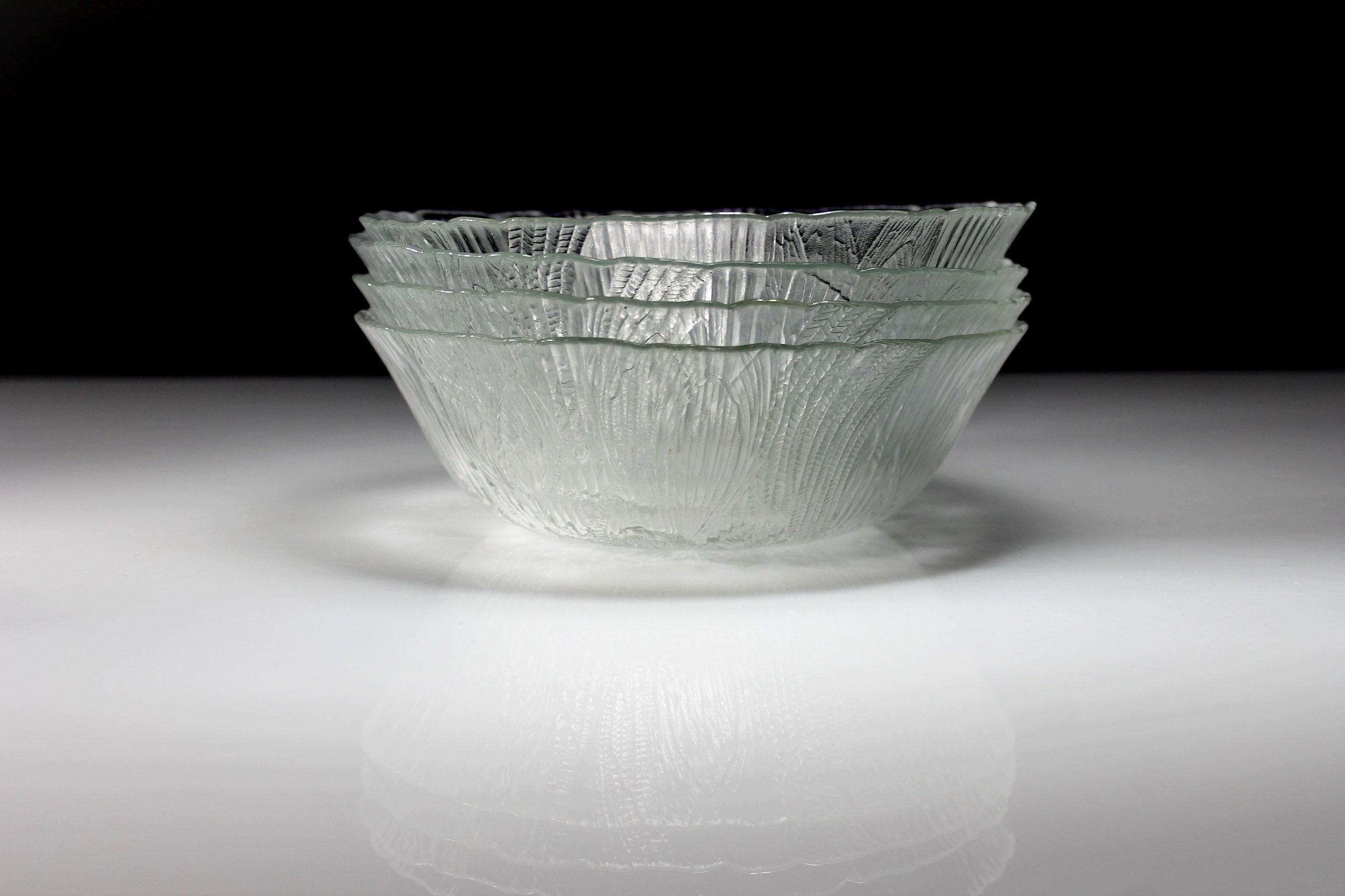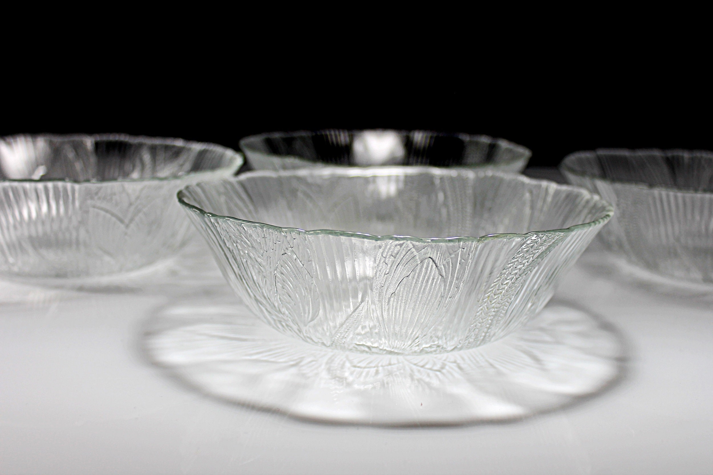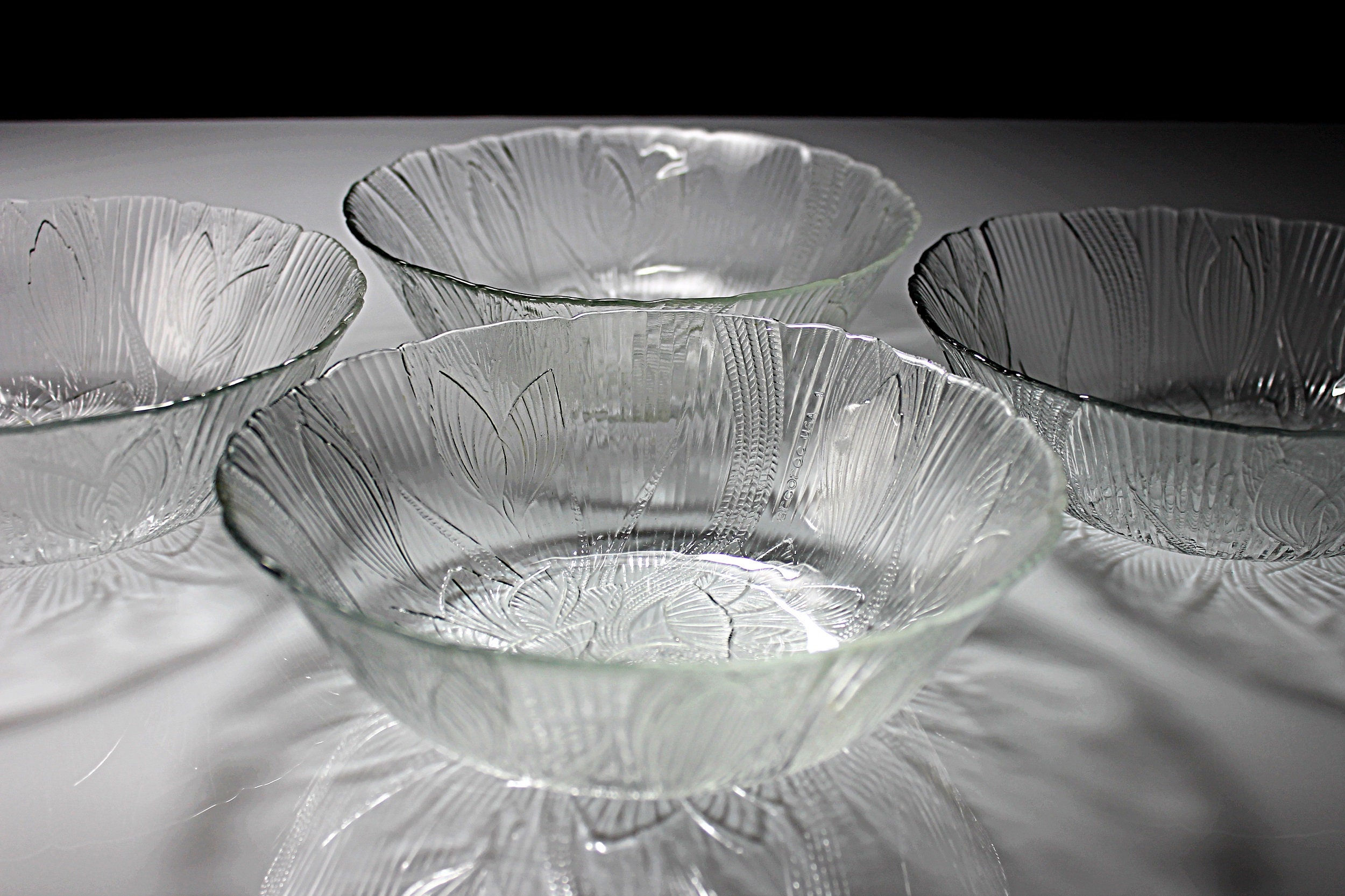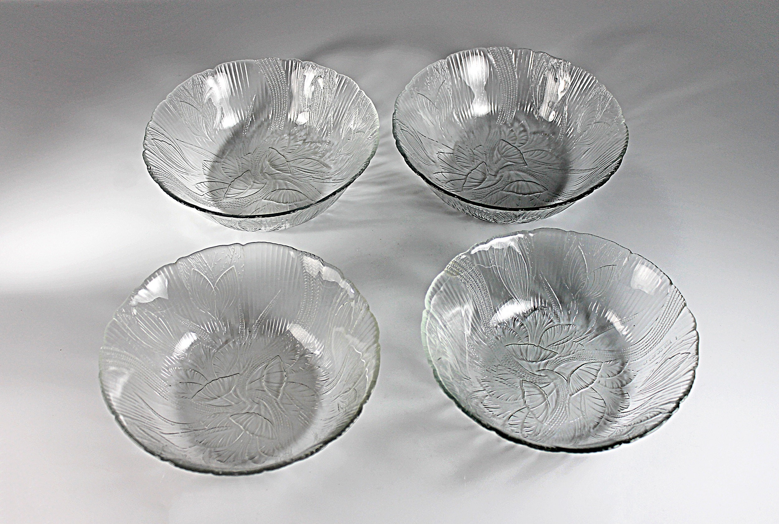 Arcoroc Salad Bowls, Canterbury, Floral Pattern, Pressed Glass, Clear Glass, Set of 4, Cereal Bowls