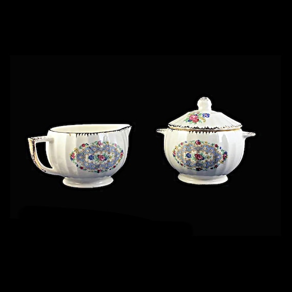 Antique Gravy Boat, Noritake Nippon, Waverly, RC (Royal Crockery), White and Gold China, Boat with Cover and Attached Underplate, Sauce Boat
