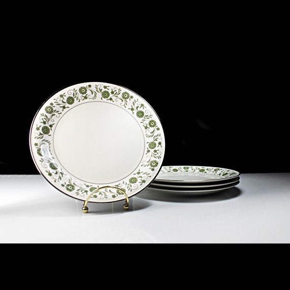Continental China Duchess Dinner Plates, 10 Inch, Platinum Trim, Mid Century Rosenthal, Set of 4